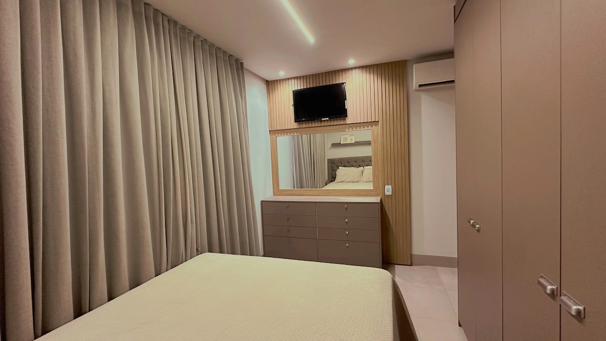 Apartamento completo, moderno e extremamente confortável. • Suíte aconchegante com ar-condicionado, TV, roupa de cama e guarda-roupa • Banheiro com box, amenities de banho, toalhas • Wi-Fi e espaço para trabalho ou estudos • Cozinha equipada • Internet • Câmera de segurança externas • Ambiente reservado • Estacionamento individual e privado com acesso direto à rua ⛔ Proibido animais de estimação 🚭 Proibido Fumar Relaxe e desfrute de um lugar amplo, seguro e perfeito para descansar.