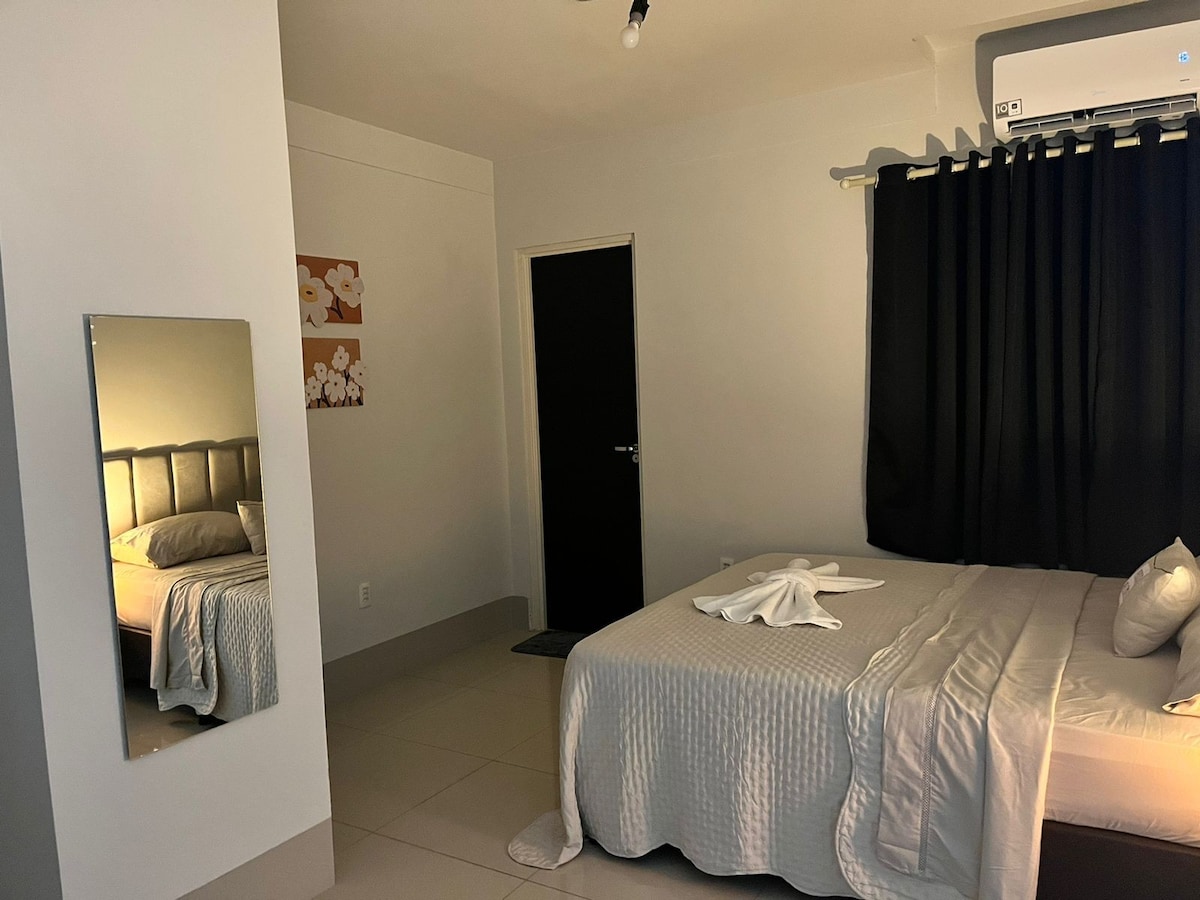 Estamos bem localizado, apartamento completo Suite com cama Queen Sala contém um sofá cama , Tv, ar condicionado Cozinha completa para fazer suas refeições Ambiente bem reservado de alto Padrão . ⛔️Proibido a entrada de animais de estimação Esqueça de suas preocupações neste lugar espaçoso e tranquilo.