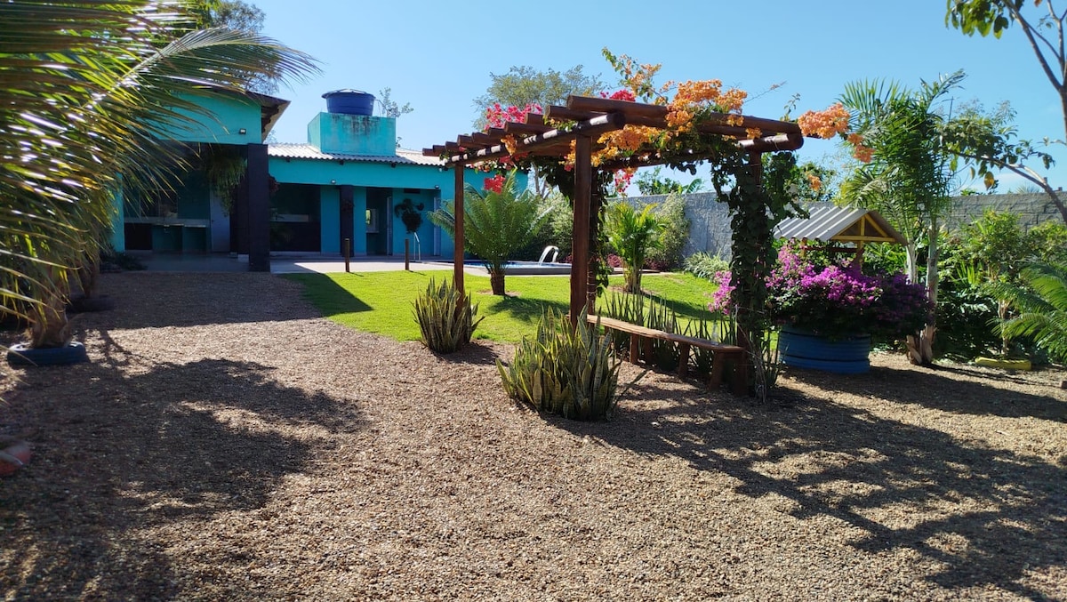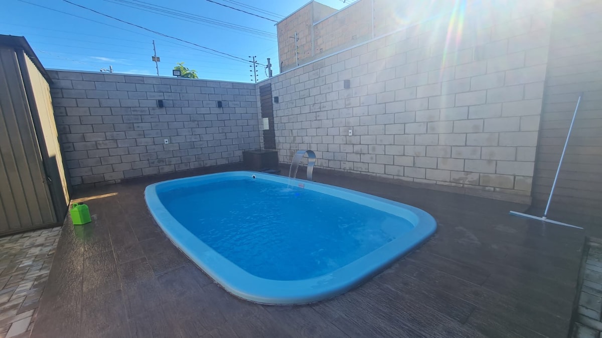 Esqueça de suas preocupações com esta Casa espaçosa , tranquila e segura. A casa possuiu muros altos, cerca elétrica e portão eletrônico, dando mais segurança e tranquilidade para os hóspedes. Possui 01 Suíte, 01 Quarto, Banheiro Social, Cozinha ampla com Churrasqueira para desfrutar de momentos como se estivesse em sua casa, Lavanderia Coberta e Garagem. Tem Geladeira, Microondas, Air flay, Sanduicheira, Panelas e utensílios, Guarda Roupas, Ferro de passar, Tábua passar e Secador de Cabelo.