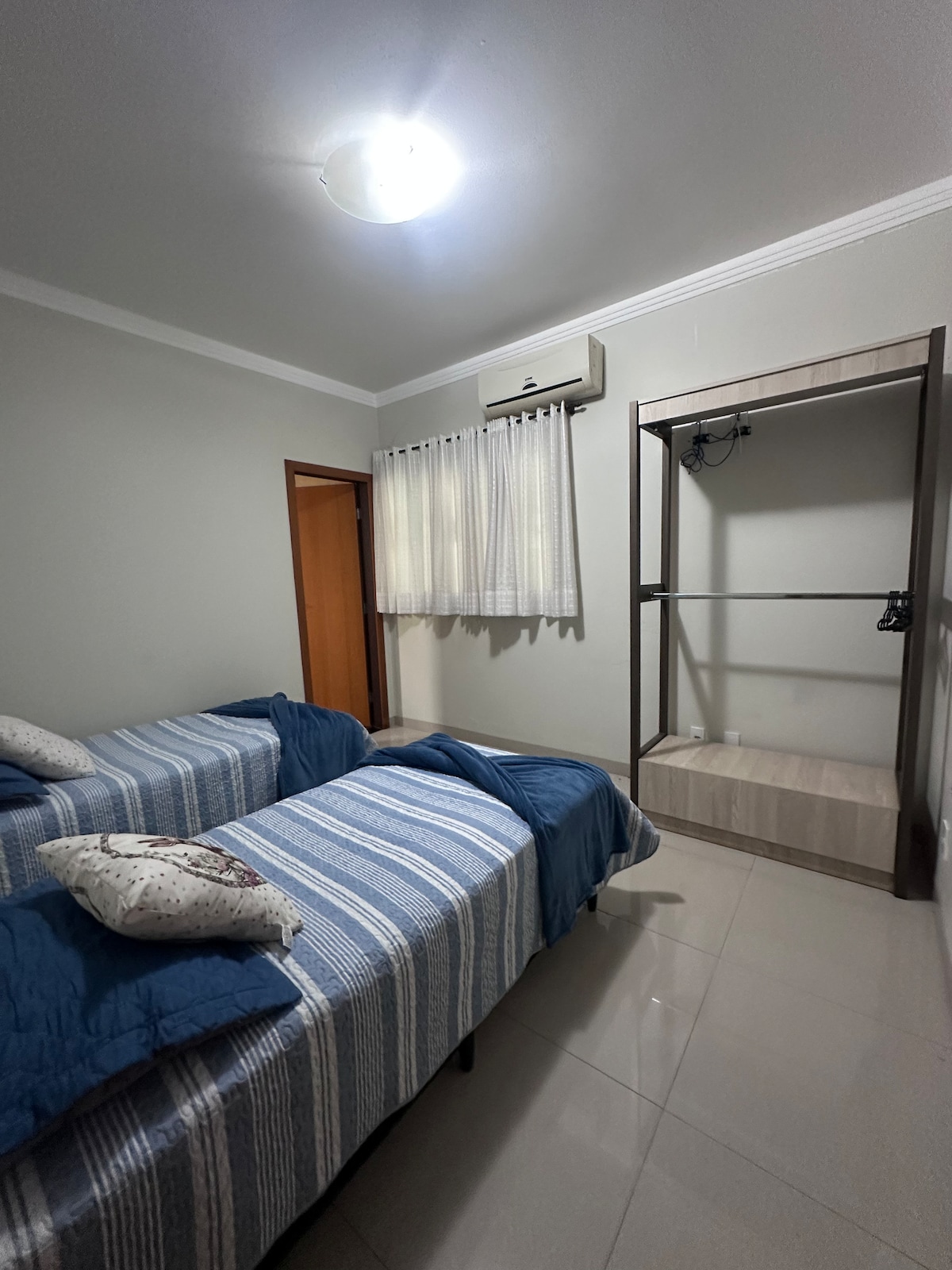 Bem-vindos à nossa casa de dois quartos ar condicionado! com uma cama de casal e três camas de solteiro, perfeita para famílias ou grupos de amigos que buscam conforto e praticidade. A cozinha é equipada com necessário para preparo de suas refeições, além de uma sala de estar e sala para refeições para momentos de convivência. A garagem espaçosa acomoda dois carros e a lavanderia está disponível para uso. A localidade é tranquila, a menos de 3 minutos do Centro. Reserve agora e sinta-se em casa!