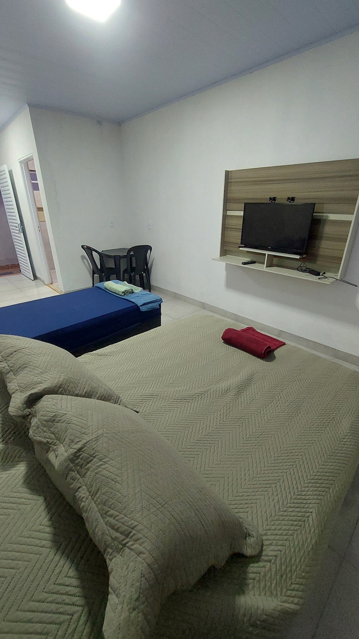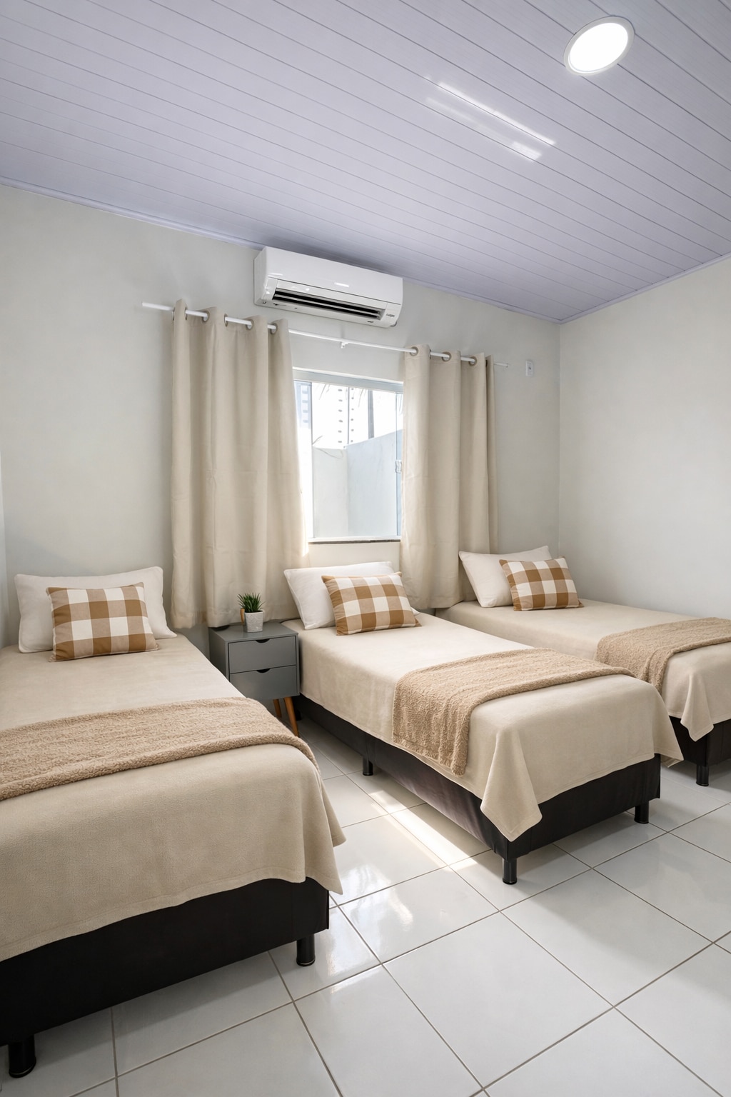 Bem-vindos à nossa casa de dois quartos ar condicionado! com uma cama de casal e três camas de solteiro, perfeita para famílias ou grupos de amigos que buscam conforto e praticidade. A cozinha é equipada com necessário para preparo de suas refeições, além de uma sala de estar e sala para refeições para momentos de convivência. A garagem espaçosa acomoda dois carros e a lavanderia está disponível para uso. A localidade é tranquila, a menos de 3 minutos do Centro. Reserve agora e sinta-se em casa!