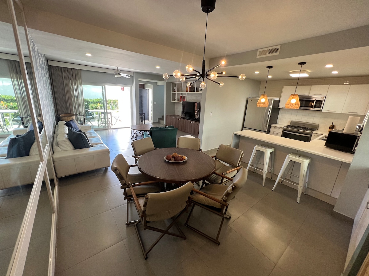 LUXURIOUS 3 BEDROOM OCEANFRONT ATTACHED VILLA +Single level with breathtaking ocean views. +HUGE private patio fronting directly to the endless ocean. +Completely remodeled and upgraded open concept. +Modern inviting decor and furnishings. +High-Speed fiberoptic Internet. +Large flat-panel Samsung Smart TVs in the living room & master bedroom. +24-hour security & gated access. +Community pools, spas, sauna, & gym. +Manicured walkways with endless views.