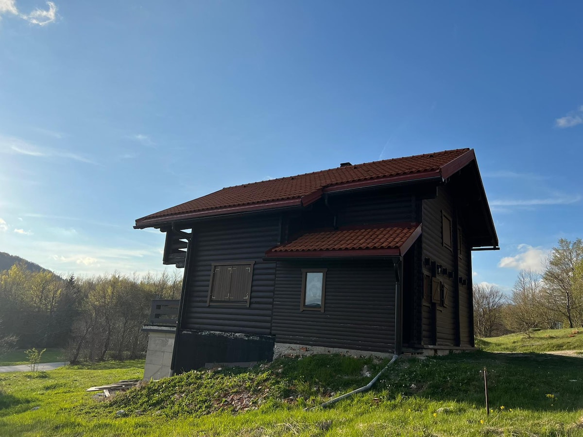Holiday home in the countryside (Doluš village) with magnificent view on the Kupa River Valley. The house is situated in the mountain region of Croatia overlooking the river, but the Adriatic Sea coast is in a 60 kilometres and can be visited in one day trip. It is a small wooden house, built in 2008.