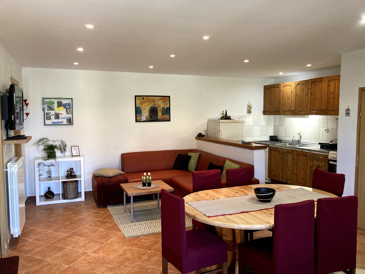 Apartment auf zwei Ebenen mit großer Terrasse. Der Wintergarten und die Terrasse laden zum relaxen ein. Das Schlafzimmer mit Badezimmer befindet sich im Erdgeschoss, die Küche, der Wintergarten und die Terrasse im 1. Stock. Verbindung über eine Außentreppe. Schlafzimmer mit Bad und Küche haben Bodenheizung sowie Klimaanlage. Im Winter steht eine Heizstrahler im Wintergarten zur Verfügung.