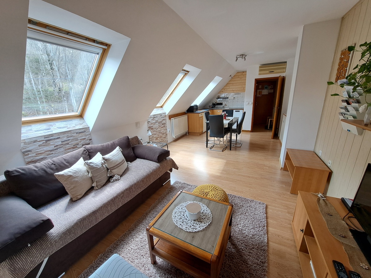 Beautiful and cosy studio apartment located in center of Ogulin. Free parking available in front of the apartment where you can safely leave your car. Free city bikes available just 1 min from your stay. We are located 30 meters from the Frankopanksa kula, Ivana's House of Fairy Tales Museum, Đulin ponor and both parks. You can see it all from your window and enjoy town center by walk on the fresh air. Children playground (Park Kralja Tomislava) located 3 min from your aptartment.