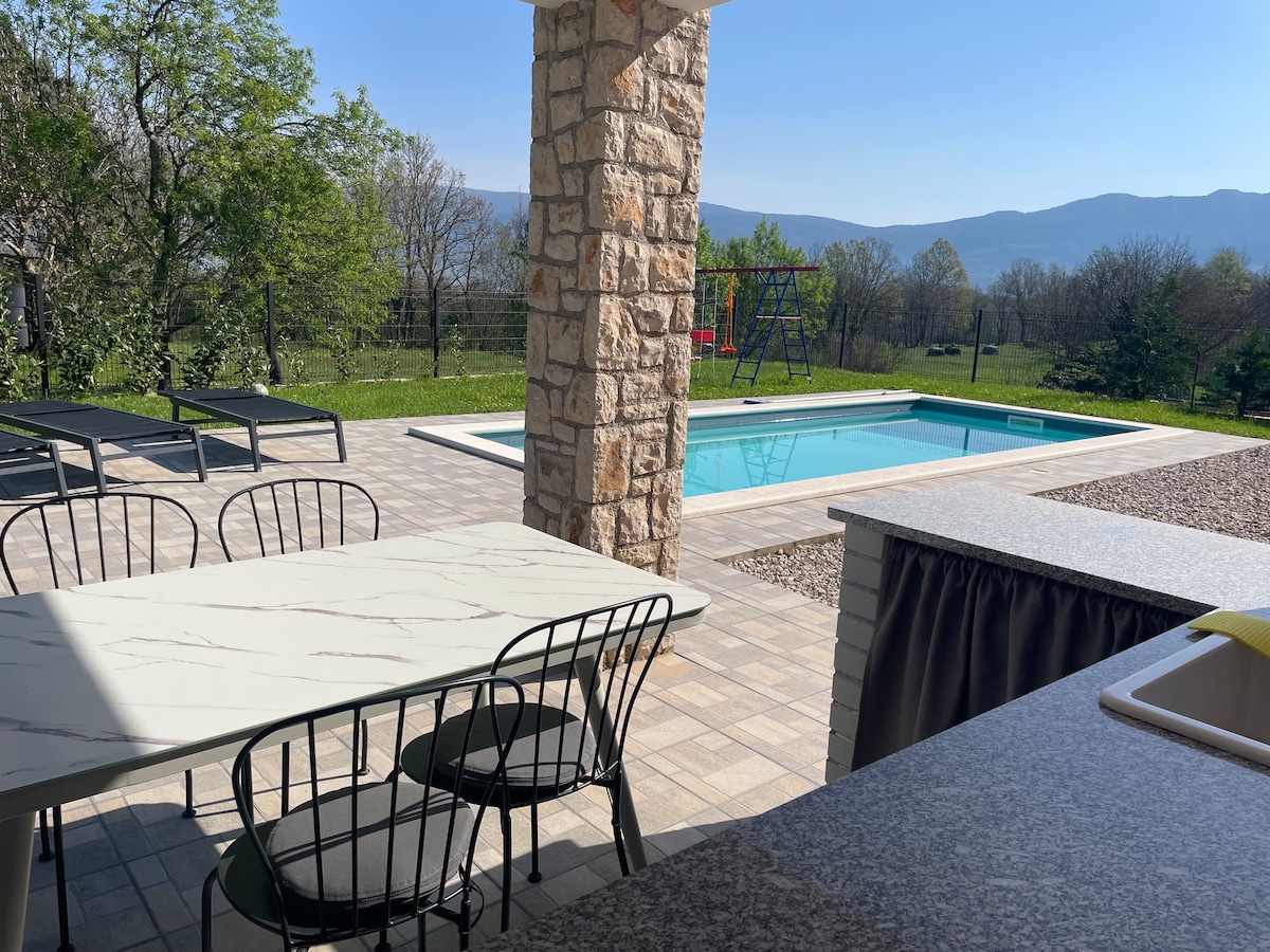 Villa Bell'Aria is situated in a quiet location surrounded by nature and at the same time only a short drive away from the famous coastal town of Crikvenica. With a total of 4 bedrooms, it can accommodate up to 8 people. Outside, a private pool invites you for a refreshment during hot summer days. The pool can be heated on guest request, with additional fee. The area with sun loungers is most of the day in the shade and offers a breathtaking view of the picturesque landscape - pure relaxation!