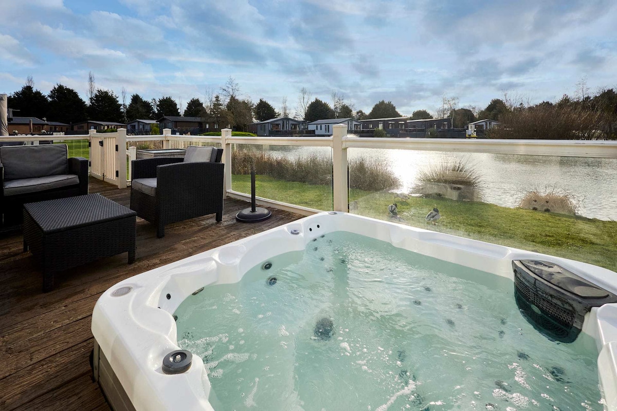 JJs Luxury Lodge situated at Allerthorpe 5 Star Country Park, York. Our Lodge is brand new top of the range and ideal for couples or families of 4 people. Fitted to your private patio is a super luxury high tech extra warm hot tub that is private and for your use. The lodge is fully equipped with TV, Sound System, Luxury Sofas, Fire Place and fully fitted Kitchen with all the equipment. The Master room also has En-Suite. JJs also owns the Bar & Restaurant Onsite. Guests are well looked after!