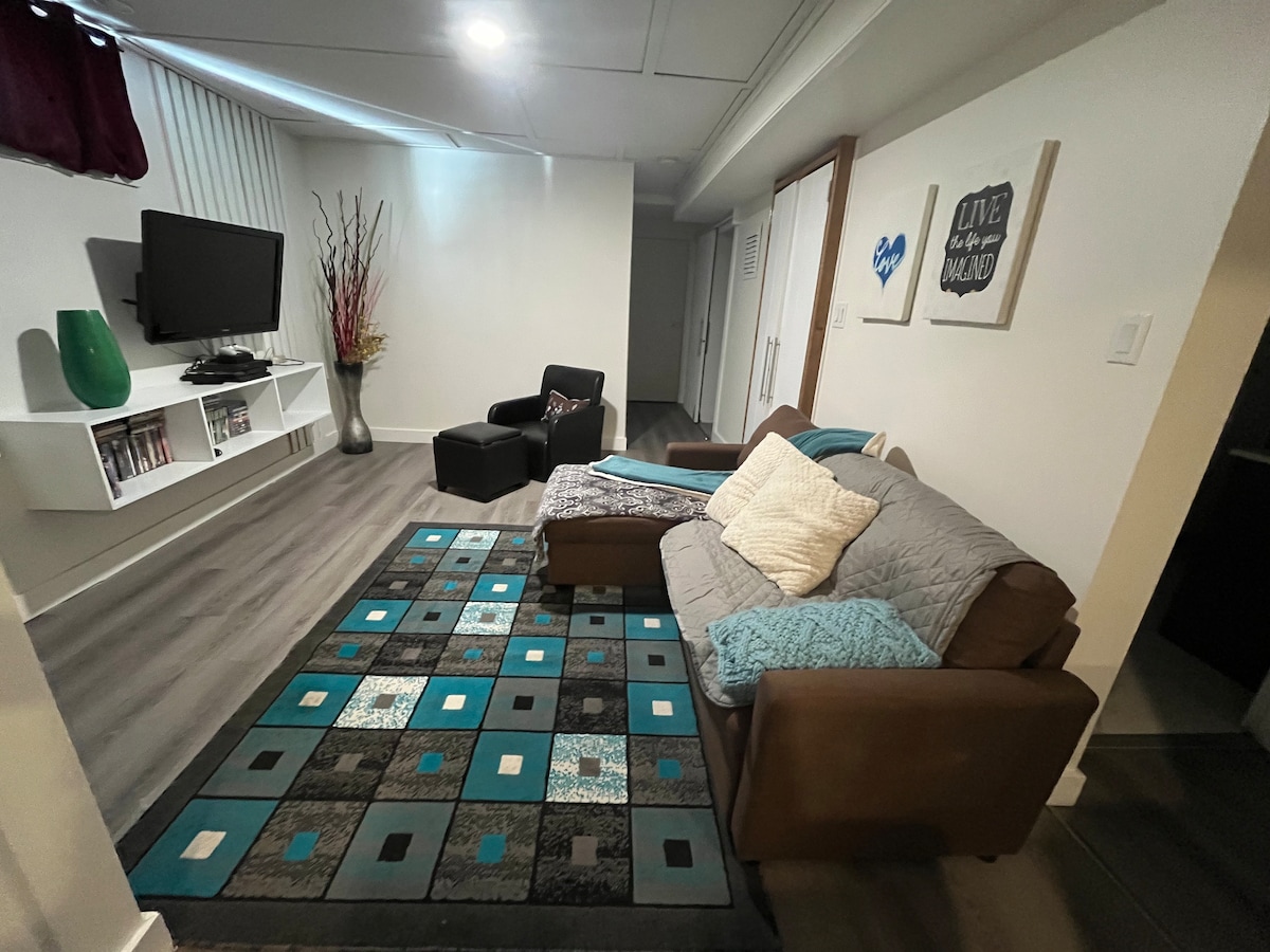 整洁舒适的地下室套房。