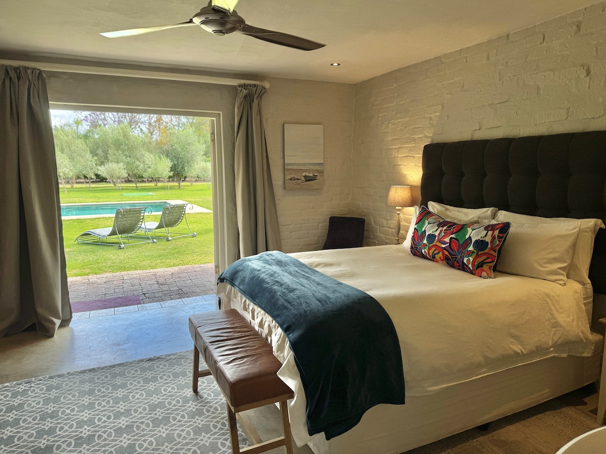 The Karoo-style Cottage Suite sleeps two and is tucked away in the pretty gardens behind the main house at Casa Milorca, which was built in 1860 and is situated in one of Prince Albert's prettiest streets in the historic heart of the town. The cottage has a king-size bed with quality white bed linen, and there is an en suite bathroom with shower, as well as a compact lounge and dining area. The kitchenette area has washing up facilities, a toaster, kettle, microwave and bar fridge, and basic kitchen utensils. There is also a tea and coffee station with home-baked rusks. The Cottage Suite, which has its own private verandah, can also be configured with two single beds instead of a king-size bed. Thanks to air-conditioning the cottage is cool in summer and warm in winter; there is also has a standing fan if that is preferred.