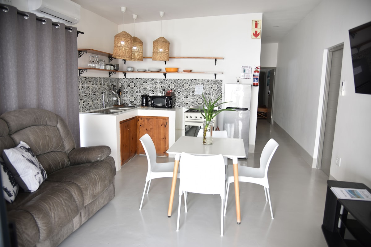 Tucked along a little stream, boasting with bird life, this private large 60 sq meter (650sq feet) 2 bedroom apartment provides a sense of peace and tranquility although conveniently located within the town in one of the most desirable areas of Oudtshoorn. The suite has 2 bedrooms, 1 bathroom, private living room, a kitchenette & large balcony. As an added bonus, the bathroom has been COMPLETELY renovated in early 2023. Brand new appliances throughout including a 50" 4k Smart TV.