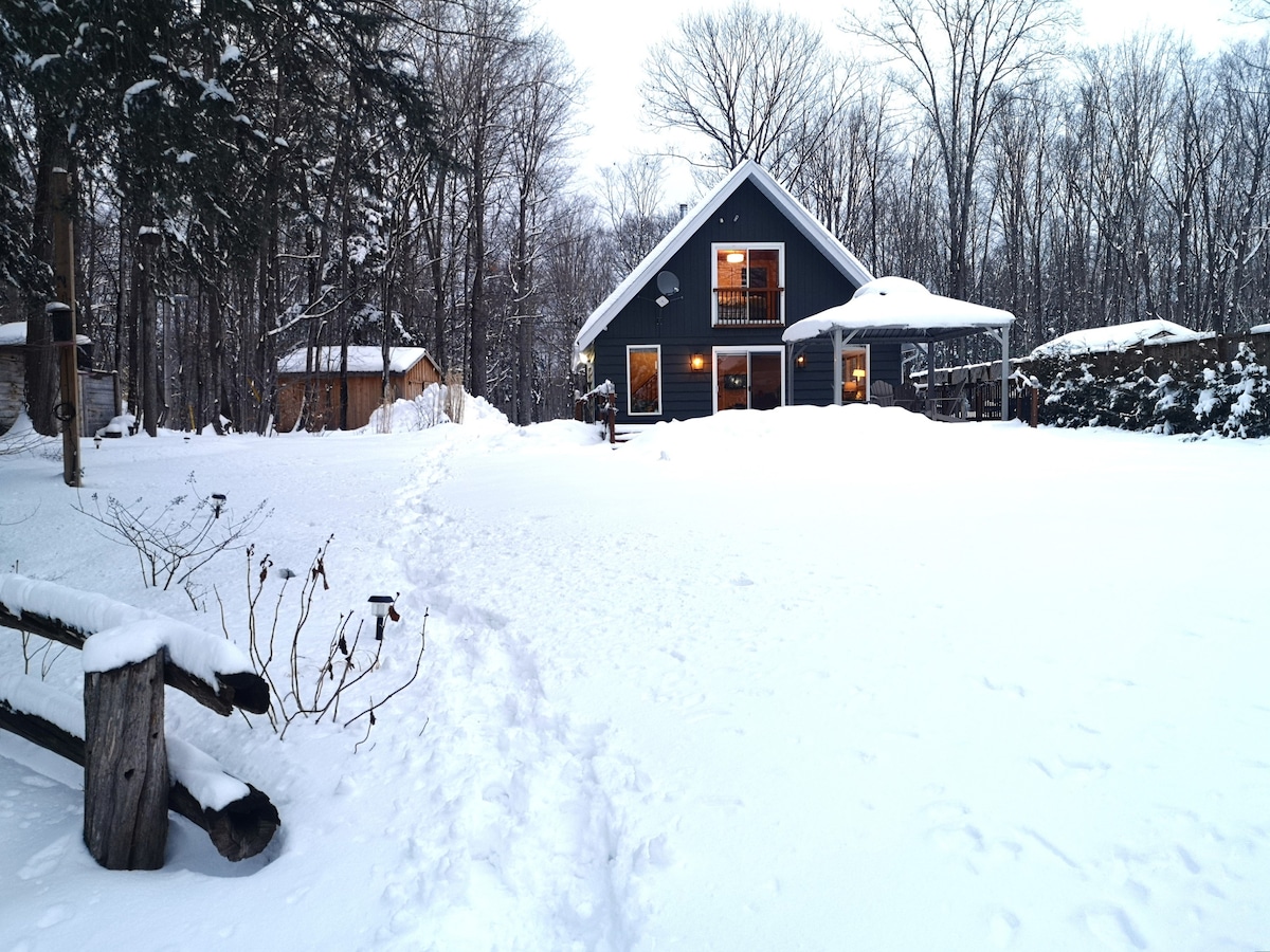 Three Fires Chalet is a luxurious retreat nestled in southeastern Ontario, offering modern design, upscale amenities, and serene natural beauty. Ideal for families, friends, or intimate retreats, guests enjoy spacious living, spa-inspired comforts, and breathtaking views. Whether for quiet reflection or joyful gatherings, Three Fires invites deep connection—to nature, to each other, and to oneself. (WE ARE NOT LOCATED ON THE LAKE, IT IS ACROSS THE STREET. PUBLIC ACCESS IS 3 MINS AWAY)