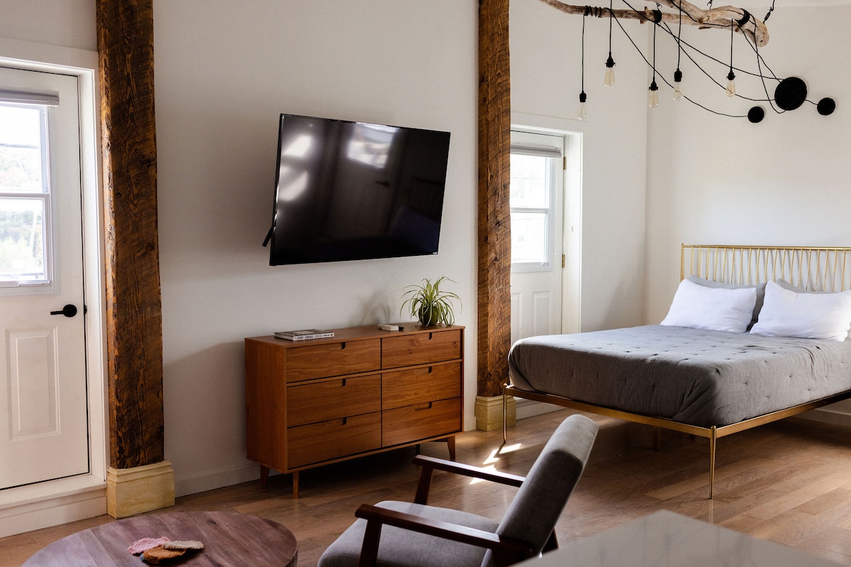Our stylish studio is the perfect place to enjoy the best Prince Edward County has to offer. Our suites are just upstairs from the county's newest brunch hotspot Creekside Cafe where you can enjoy breakfast/ lunch/brunch & cocktails daily from 8-2pm. Located just off of Main Street in Wellington you are steps away from the Midtown Brewing Company, Piccolina Marcatto, and Drake Devonshire. STA license # ST-2021-0229