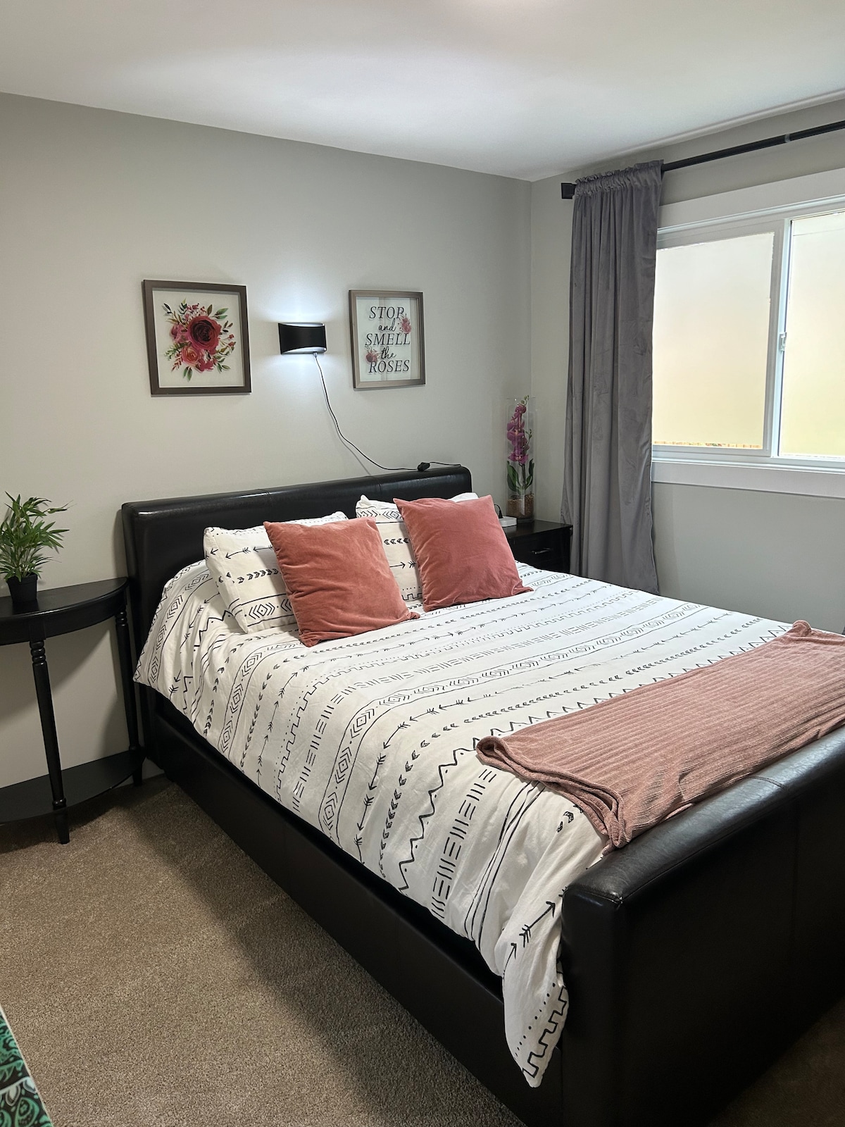 Our modern suite is in a newer home in downtown Prince George and is your perfect alternative to the standard hotel room. It’s only walking distance from many great restaurants, entertainment, the downtown business district (Victoria St) and the hospital. The one bedroom suite has two large windows (with black out blinds for those who want to sleep in) and everything someone would need to feel at home during their stay. The owners are a young professional couple who live upstairs.