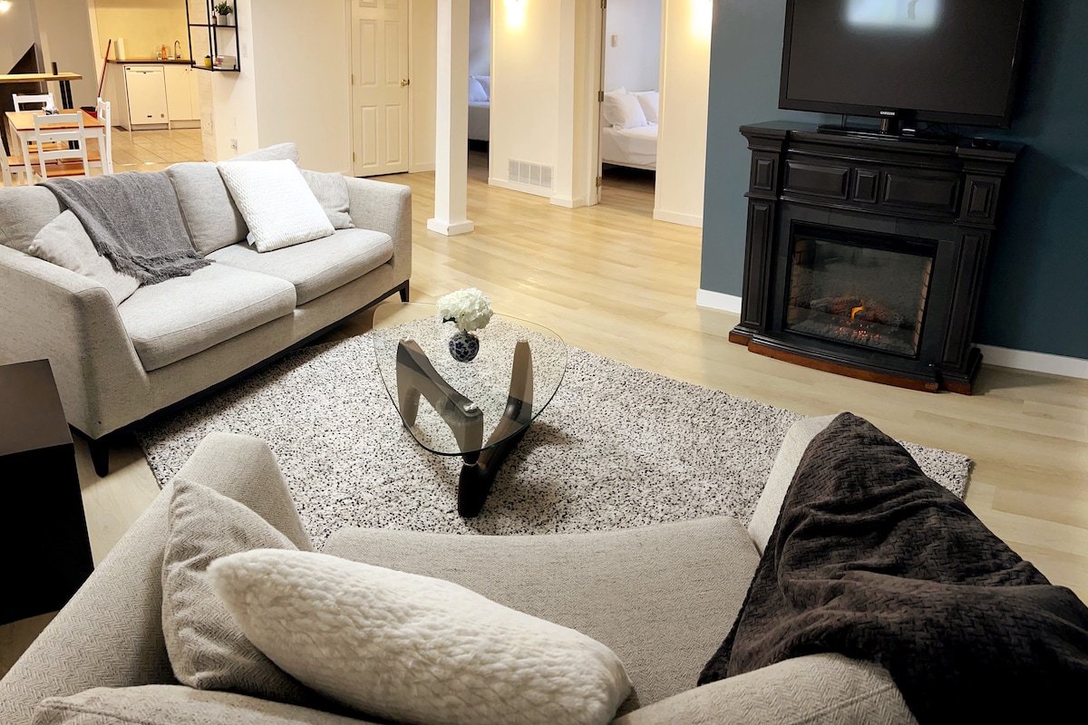 This cozy suite is perfect for up to two travellers for both short and long stays. With a newly renovated, well-stocked kitchen, guests can prepare their own meals with ease. A dedicated workspace allows guests to work from home in this quiet, fully-insulated basement suite. The studio-style bedroom boasts a queen-size Murphy bed with quality bedding, a comfortable sofa and a large smart TV, making this suite the perfect place to unwind after a long day! Cared for by Inclusively Home Ltd.
