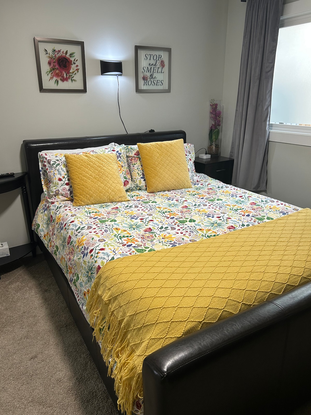 Escape to our charming ground-level suite for a relaxing and comfortable stay. Perfectly situated in a quiet and centrally located neighborhood, our one-bedroom, one-bathroom suite offers a warm and inviting atmosphere, providing the ideal home away from home during your visit. Our spacious suite is designed for your comfort and convenience. The well-appointed kitchen, plush queen-sized bed, large sofa and Smart TV create a welcoming space for you to unwind. Looking forward to hosting you!