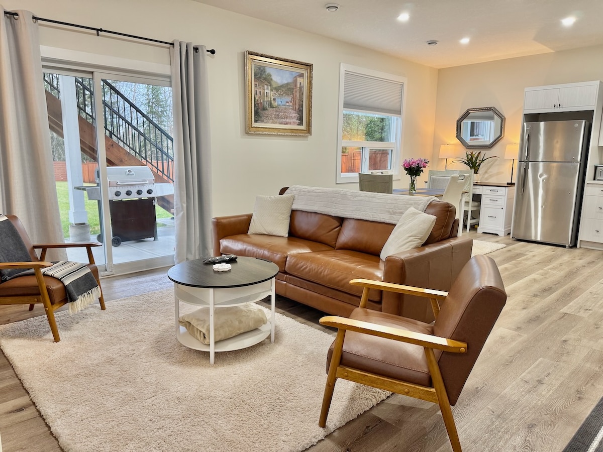 Charming fully contained guest suite with private entrance located in Creekside subdivision. Only minutes from shopping and restaurants. Perfect for a weekend getaway, business trip, remote working, or cozy home base while exploring everything Prince George has to offer. Living space includes 1 bedroom with queen size bed, pullout sofa bed, smart TV with cable box, Netflix, Prime and Disney. The kitchen is fully equipped and you can also enjoy the outdoor private seating with your own BBQ.