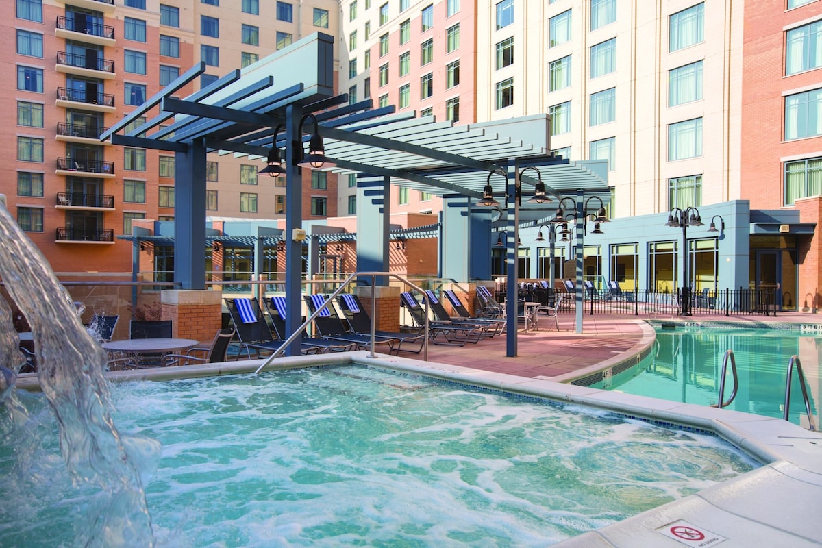Have fun and relax at this stylish oasis! Packed w/ amenities. Huge Pool w/multiple cabanas, HOT TUB, trampoline, playground, axe throwing, pool/ice hockey table, arcade,huge theater room and outdoor projector too, basketball court, grill, spa/library with sauna and full gym!! 5 comfy beds. Rooms split for privacy. Open kitchen/dining/living room. Cold DeerPark water fountain. Basement apt so there is some movement noise. Updated bath and an outdoor shower. 20 mins from DC & National Harbor