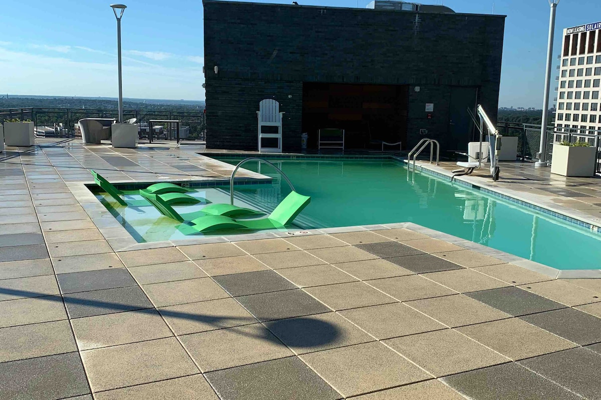 Come and enjoy the Beautiful heart of Downtown Silver Spring. Only seconds from metro, the building is conveniently located in Georgia Ave, seconds from Silver Spring Mall, Theaters, restaurants, and just few miles from Downtown DC. Enjoy an amazing city view with floor-to-ceiling windows. Relax at the beautiful rooftop pool, luxury sky lounge, Patio and Enjoy our City view fitness center. Experiment unforgettable stay in a two bedrooms two baths Suite and top of the line amenities.