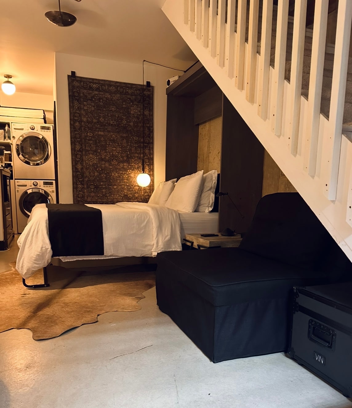 This apartment with its own private entrance sits below our brick Cape Cod-style home. The unit is totally refurbished with luxury amenities. It's a cozy bohemian cottage vibe with a touch of Miyazaki anime magic. Open floorplan includes a fully stocked kitchen with dishwasher (and new Nespresso!) plus a separate sleeping room with comfy king-sized bed and a private bathroom with a large walk-in shower. Off-street parking, fast internet, & sofa bed for extra guests. No smoking inside, please.