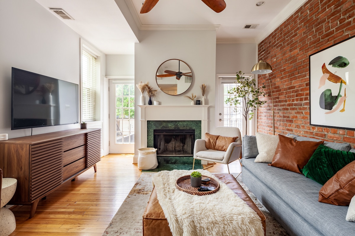 Build a wood fire to stay cozy in this artfully converted warehouse, or sip a coffee alfresco on the lavender lined patio. Exposed brick walls and bleached timber beams recall its 1818 vintage. A curated collection of high-end furnishings, designer lighting fixtures, and an updated kitchen provide modern luxuries. * Guest comfort and safety is our highest priority: In addition to a rigorous cleaning regiment, guests have exclusive use of the entire townhouse and private street level entry.