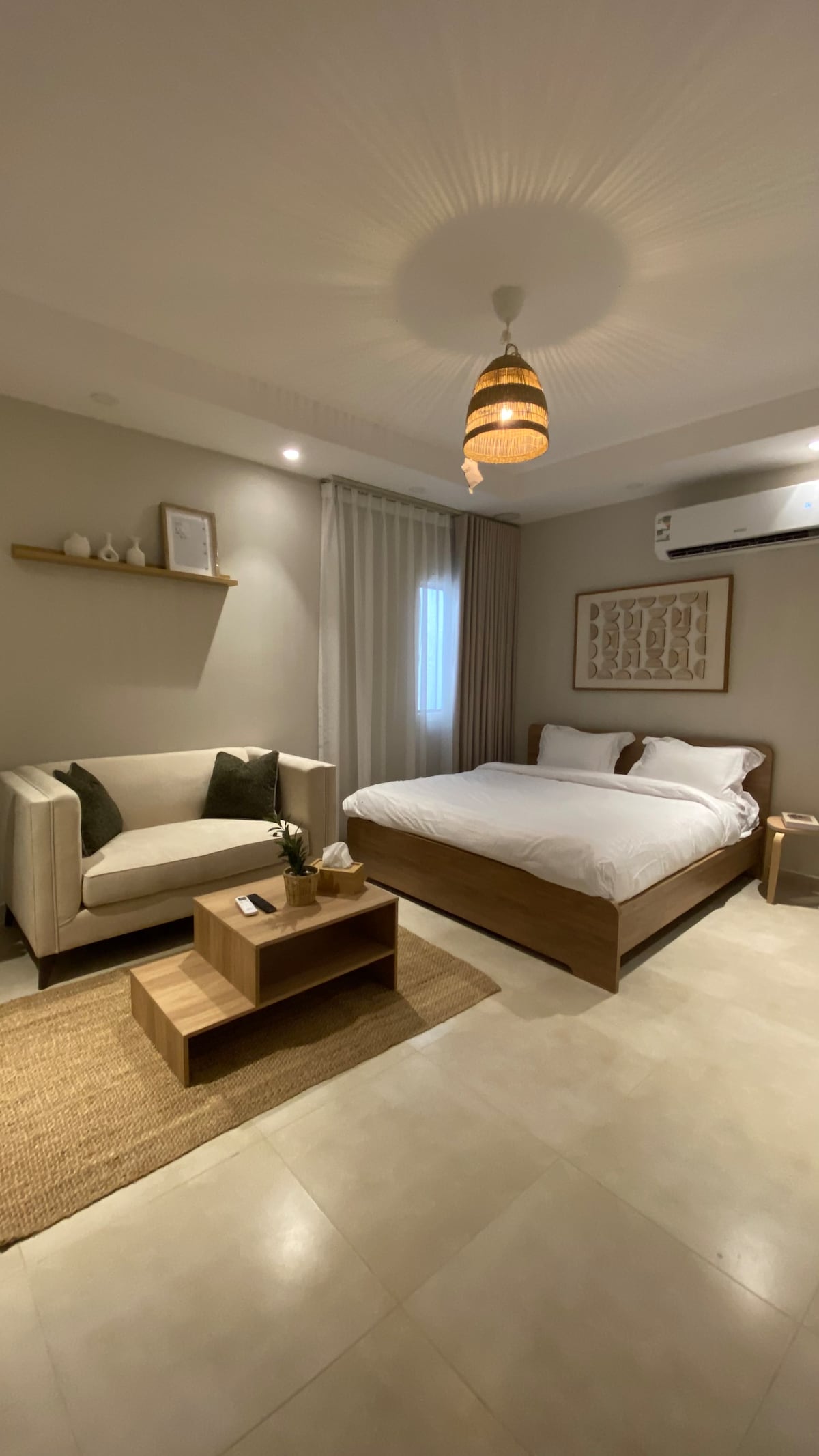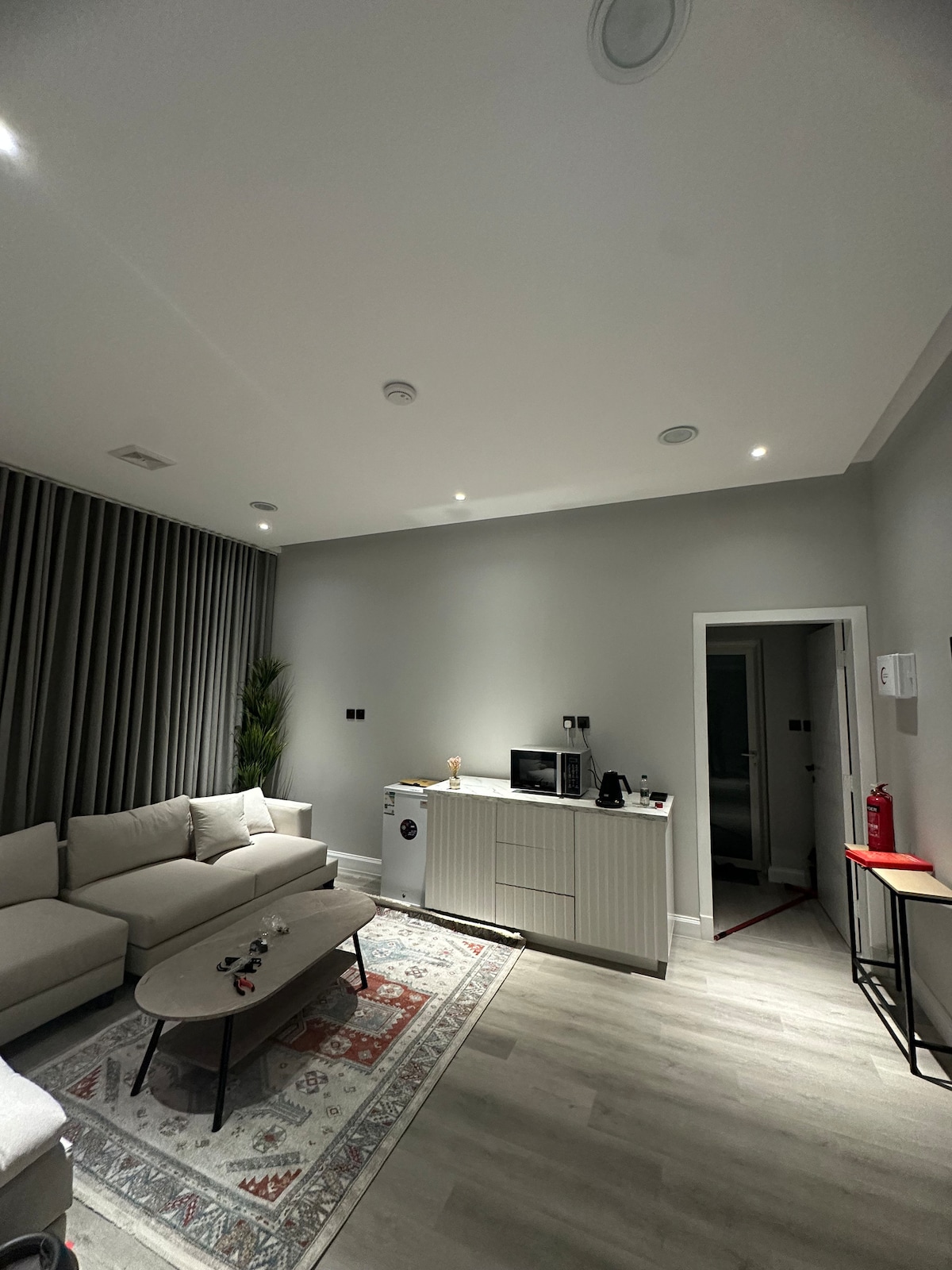 تم تصميم هذا المسكن ليتناسب مع احتياجك ويصنع رفاهيتك وراحتك بكامل التفاصيل ، يتميز بالخصوصية والأمان بدخول ذكي واحتياجات غرفة النوم لقضاء ليلة هانئة وسرير ماستر وشاشة ذكية 60 بوصة وشبكة واي فاي ويتميز بموقعه المميز وقربه من سكة القطار ومركز تسوق يبعد تقريبا 4 كيلو صمم بألوان مريحة وأثاث مودرن ليصنع راحتك ... اتمنى لك قضاء ليلة سعيدة ...