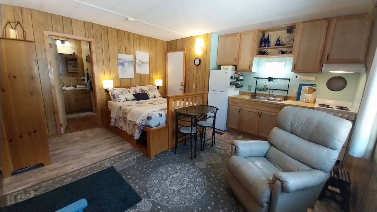 Your family will be close to all amenities when you stay at our centrally-located unit. On the bottom floor, offering easy access, this cozy unit offers a full and a twin bed. A fully equipped kitchen with most of the essentials to make you feel right at home. The 3/4 bath also houses a stacked laundry center for your convenience. In the main area we offer additional sleeping on a small hide-a-bed, tv with a dvd player and dvd's for your entertainment. Cozy & private!