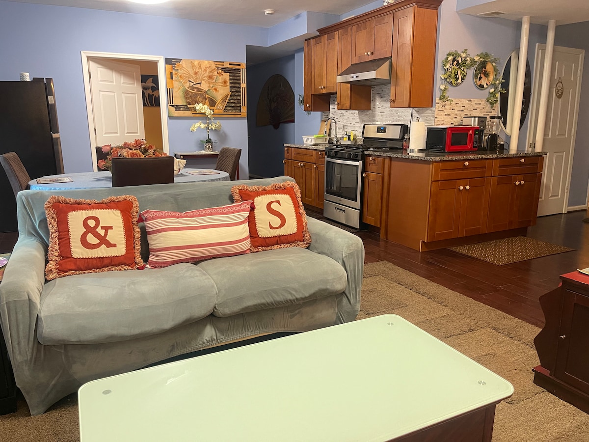 Welcome to our luxurious 2100 Sqft basement suite that boasts a spacious layout and updated styling. Nearby Washington DC and I95, With three bedrooms, including one king and three queen-sized beds, our suite comfortably accommodates your entire group. Our fully equipped kitchen includes a stove, large fridge, dishwasher, microwave, toaster, coffee maker, and dining table, providing you with everything you need to cook and dine during your stay. We are confident you will love your stay with us!