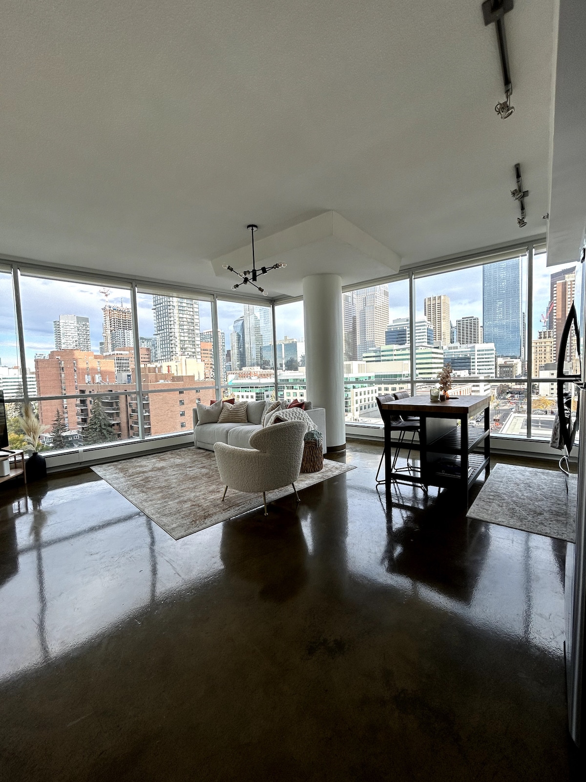 Relax at our bright and stylish 1 bedroom unit located right beside the beautiful bow river. High end finishing's throughout, floor to ceiling windows, secured underground parking and thoughtful touches throughout that are sure to make your stay unforgettable Please note the building is downtown, unfortunately during the month of august / sept there will be some construction being completed nearby
