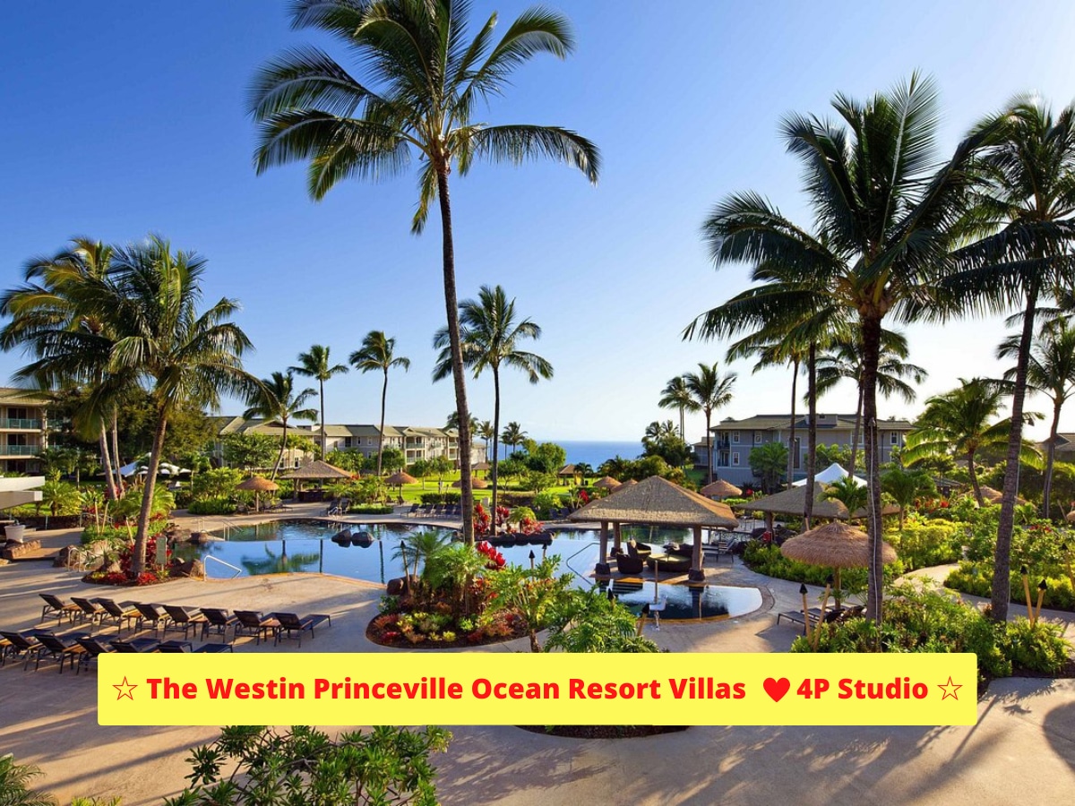 Hanalei Bay Resort 1305 & 6: This beautiful spacious studio with adjoining hotel room is located on the top floor with high open-beam ceilings. It is surrounded by tropical foliage and spectacular views of Hanalei Bay and Bali Hai. On your very own private lanais you will capture the true Hawaiian Aloha Spirit with the sound of water falls and evenings filled with Hawaiian music in the background. The resort separately charges $45 per day (including parking) and a $50 check-in fee.