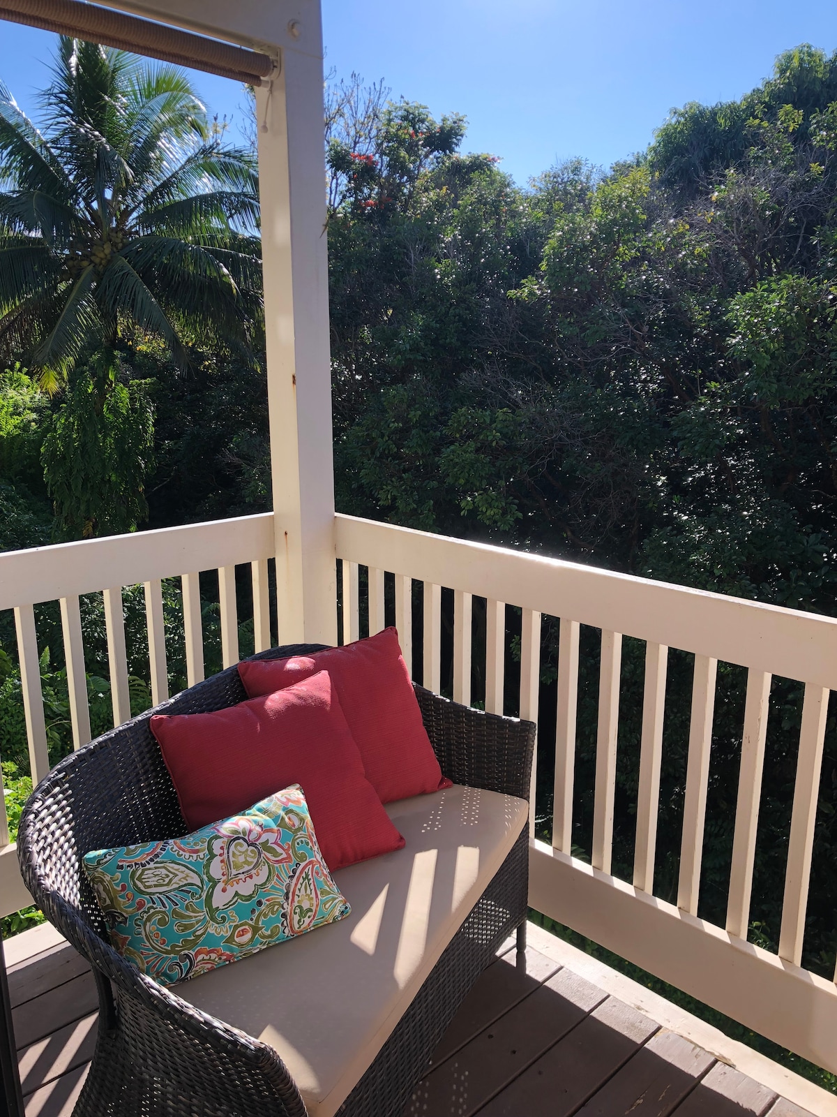 Perfectly Situated on The North Shore of Kaua'i, you are within walking distance of Hideaways Beach and Pu'u Poa Beach. The lanai views are ALL natural: trees, birds, and mountain tops; no buildings! Walk out the front door and you are steps away from Kenomene Park where you can see the stunning views of the Pacific Ocean as well as the surrounding mountains and waterfalls. Fast 400 Mbps WiFi, On-Site Parking, A/C, Full Private Bathroom, Fully Stocked Kitchenette, Linens, Roku Smart TV