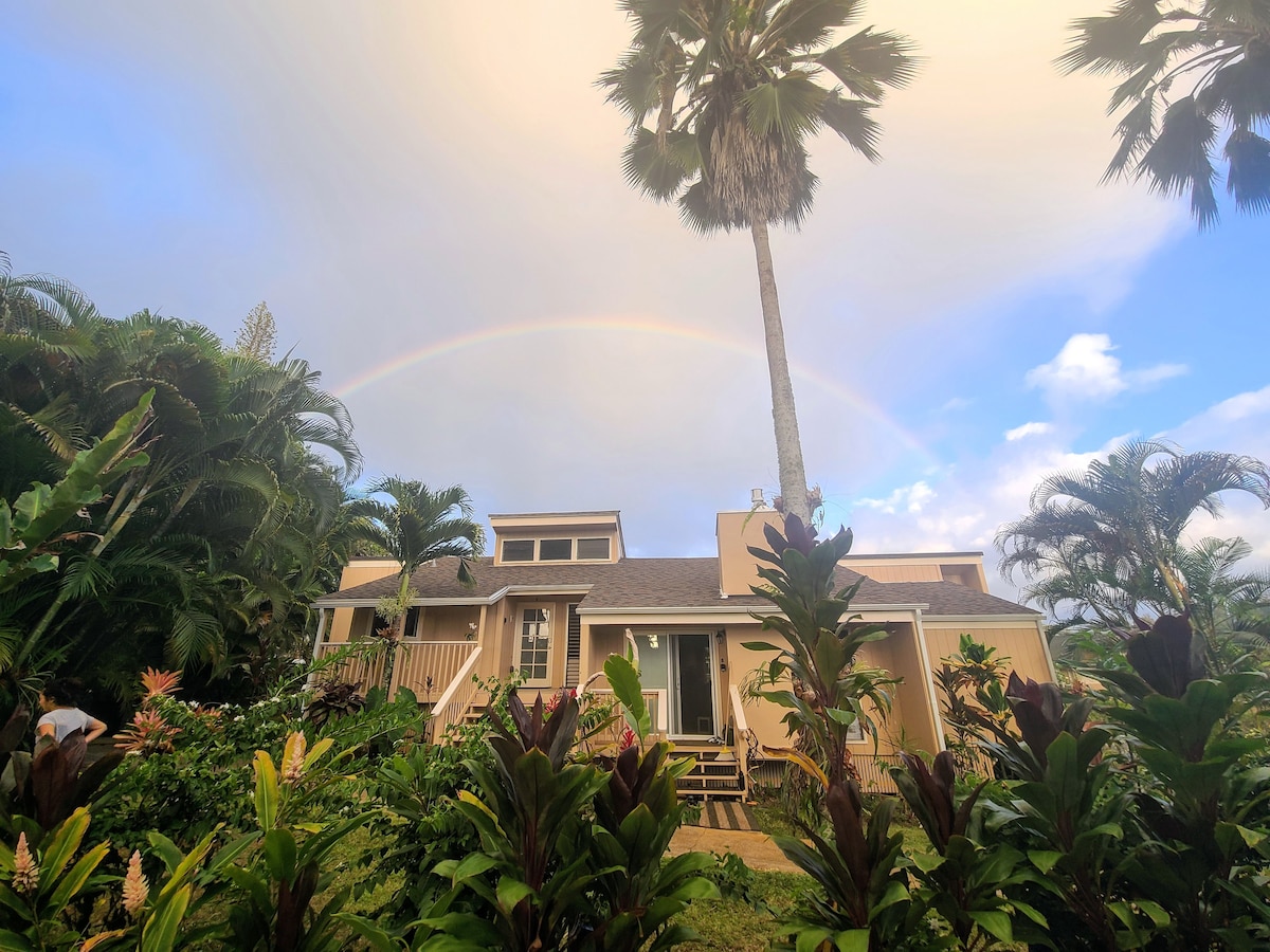 Enjoy our 22-acre Oceanview Resort on the romantic North Shore! Just 10 minutes from world-famous Hanalei Bay and tropical beaches, the resort offers 2 swimming pools, waterfalls, hot tubs, a putting green, gym, tennis & pickleball courts, grills, e-bike and Tesla rentals. Our beautiful condo features a fully-equipped kitchen and opens onto a lush garden lanai. "The nicest unit in the entire resort," say the housekeeping staff. "Most responsive management team," say front desk. Look no further!