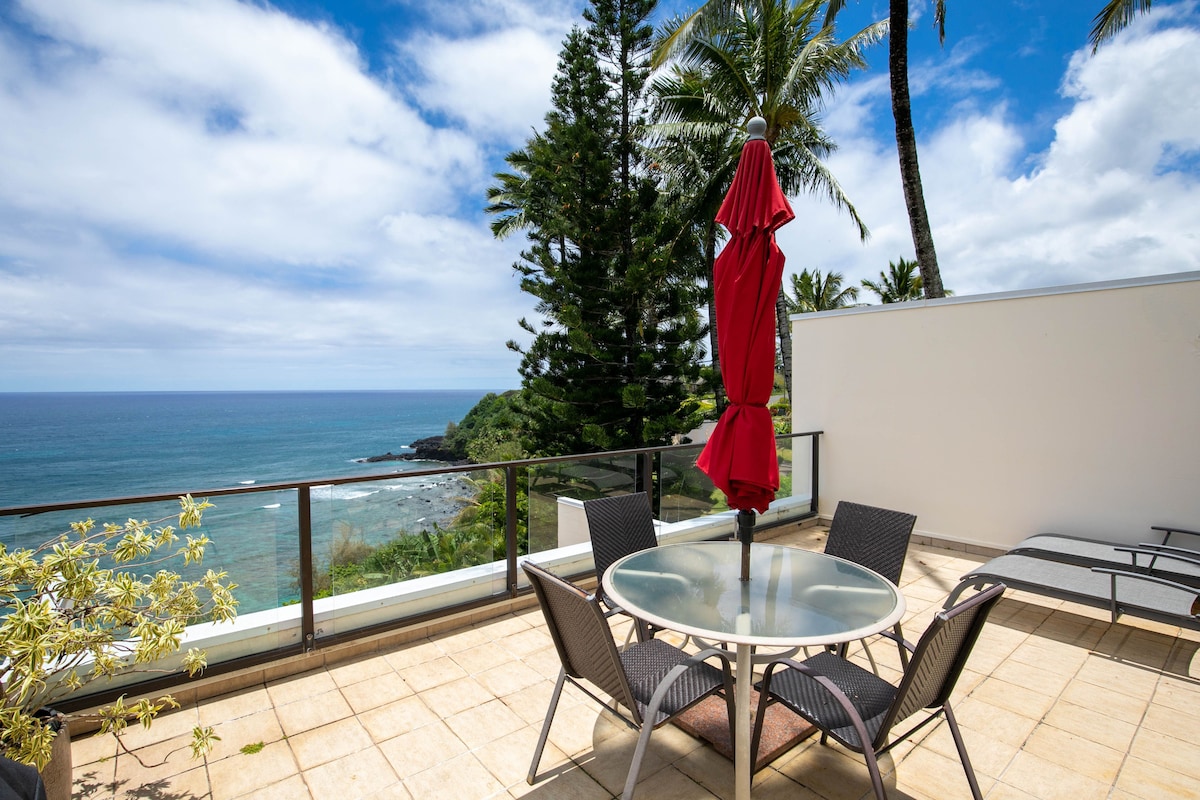 Beautiful corner unit 2BR/2BA penthouse on a quiet green cliff overlooking Anini Reef. Hale Mōlī is paradise away from home. Curated to highlight the surrounding nature, sounds of the ocean fill the unit. Relax, unwind & enjoy cozy luxury at the beach. Private entrance w/ views from every window, AC + fully stocked kitchen. Enjoy sunset over Bali Hai, walk to secluded Sealodge Beach trail, or explore Kaua‘i’s North Shore; snorkeling, hiking, kayaking, dining, & Hanalei Bay are short drive away.