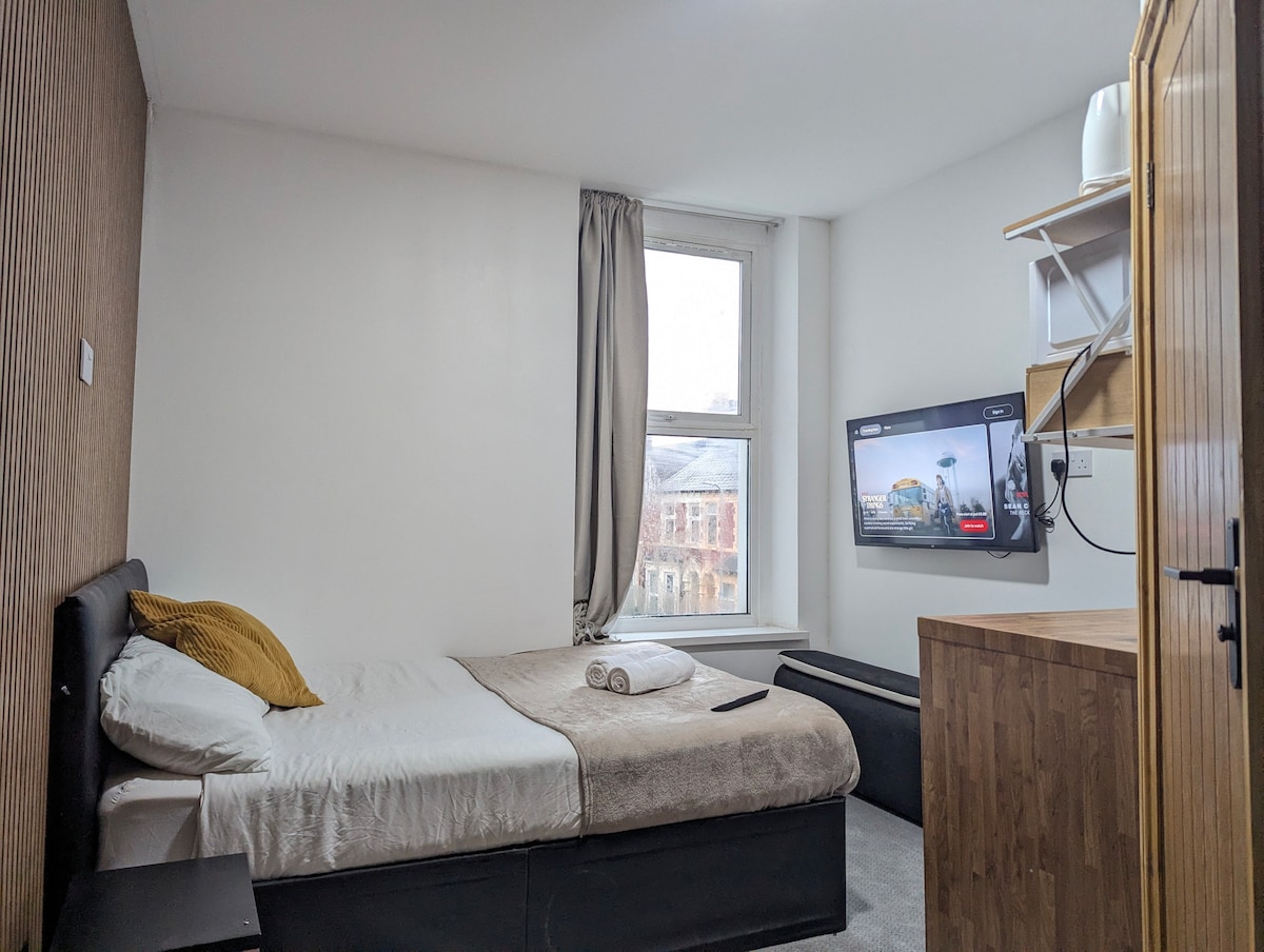 Modern 2-bedroom apartment in the heart of Cardiff, perfect for 4 guests. Enjoy a stylish lounge, fully equipped kitchen, and fast Wi-Fi. Walking distance to Cardiff Castle (3 mins) , shopping, and nightlife. Ideal for city breaks or business trips with comfort and convenience. SUPERFAST Virgin BROADBAND and TV. Walk in shower and separate Bath. Smart TV: Netflix, Amazon prime and YouTube (log in required). Fibre optic superfast broadband included.