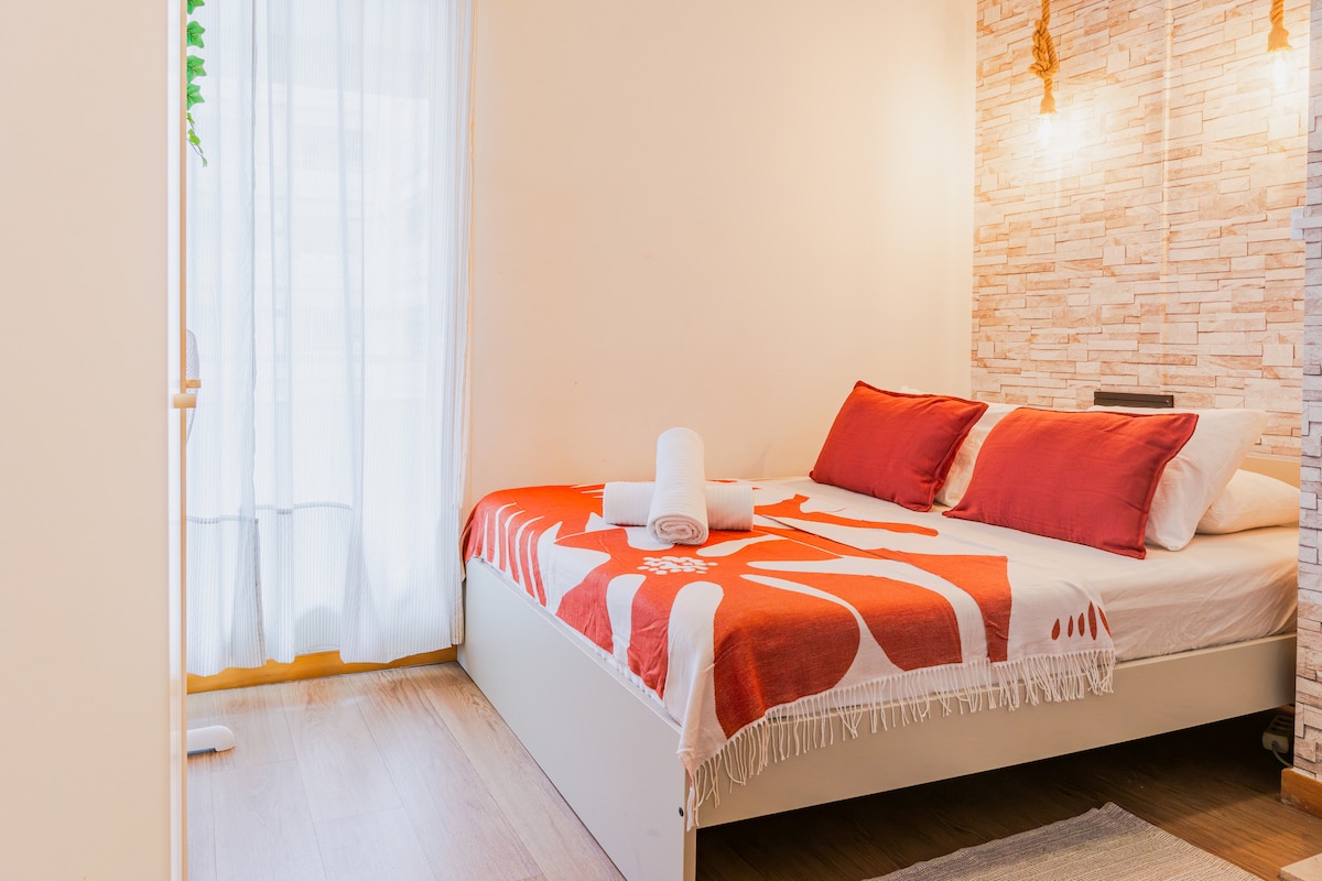 This beautiful ensuite bedroom with private bathroom is facing the Alegria street. The sunlight fills in the room during Golden Hour. Thanks to noise reduction windows and blackout blinds, you'll sleep peacefully. The bedroom door can be locked from the inside and from the outside. You will have access to a shared kitchenette where you could prepare a coffee or simple meals. Thanks to a self-check-in system and clear instructions you'll easily gain access to your bedroom via a key lockbox.