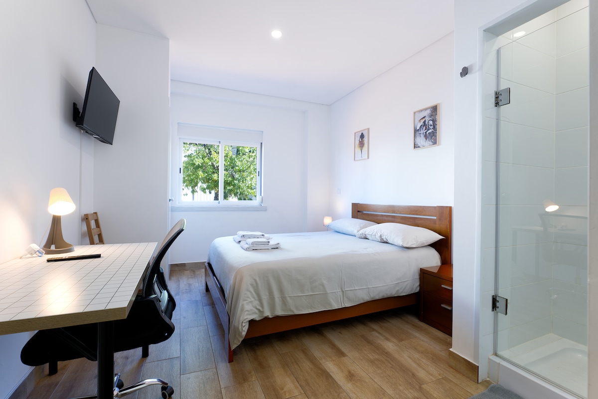 Discover our stylish studio in central Lisbon. Enjoy sunny views and easy access to public transport. Our rooms feature a comfortable double bed, a private bathroom and a kitchenette equipped with all the essentials you need for a comfortable stay, including a fridge, microwave, boiler, small stove top, and coffee machine. Private parking: 10€/night (subject to availability) Fast and stable WiFi/Ethernet