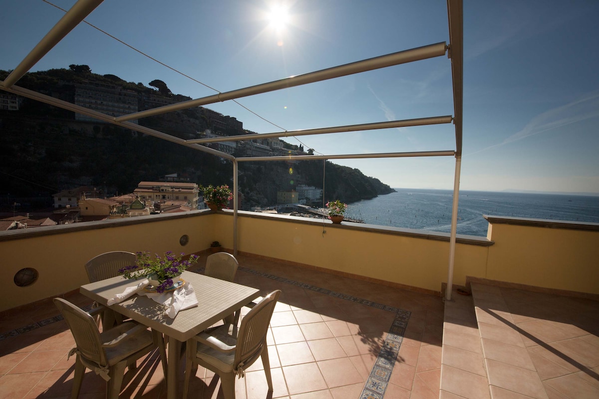From MiraSorrento you will have one of the most breathtaking view on Sorrento and Naples bay. Situated on Sorrento hills, 15 minutes by car from the center, the apartment can accomodate 5 people. It has been completely renovated, a living room, fully equipped kitchen,a bedroom, two bathrooms, wonderful garden,with many colorful flowers. IMPORTANT: If you are going to rent a car it must be SMALL one It is possible to reach Sorrento center along a path of 200 STAIRCASES , 20 min by walk