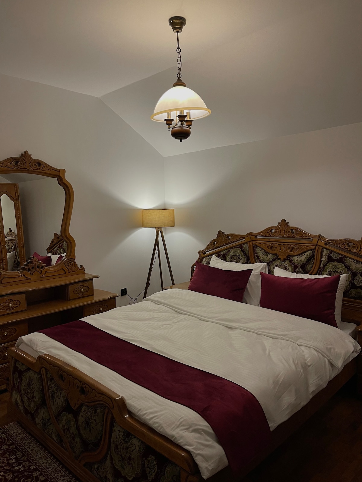 This unique place has a style all its own. Enjoy the breathtaking view of Prishtina. The apartment is modern, spacious, and super artsy, with stylish decor and all the necessary amenities. The location is convenient, close to malls and restaurants, and the city center is just a 10 min. drive away. The rooftop shared terrace is the perfect spot to relax and take in the magnificent view. Whether you're a solo traveler or a couple this apartment is an excellent choice for your stay in Prishtina.