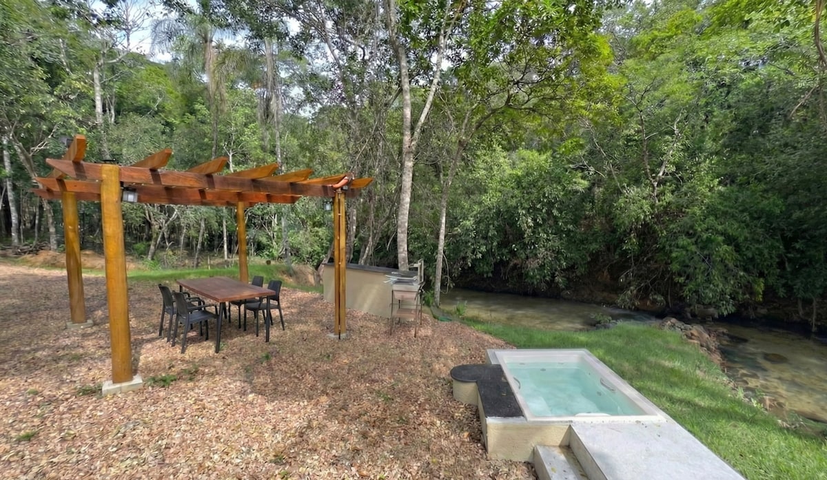 Cabana do Cerrado — luxo e amplitude logo na chegada Para até 4 pessoas (cama queen + sofá-cama), com cozinha completa, mesa de jantar e banheira de imersão com vista panorâmica para a natureza. Ideal para casal ou família. ❌ Não são permitidos eventos. ✔️ Regras detalhadas nas informações específicas na aba "Regras da Casa", leia atentamente
