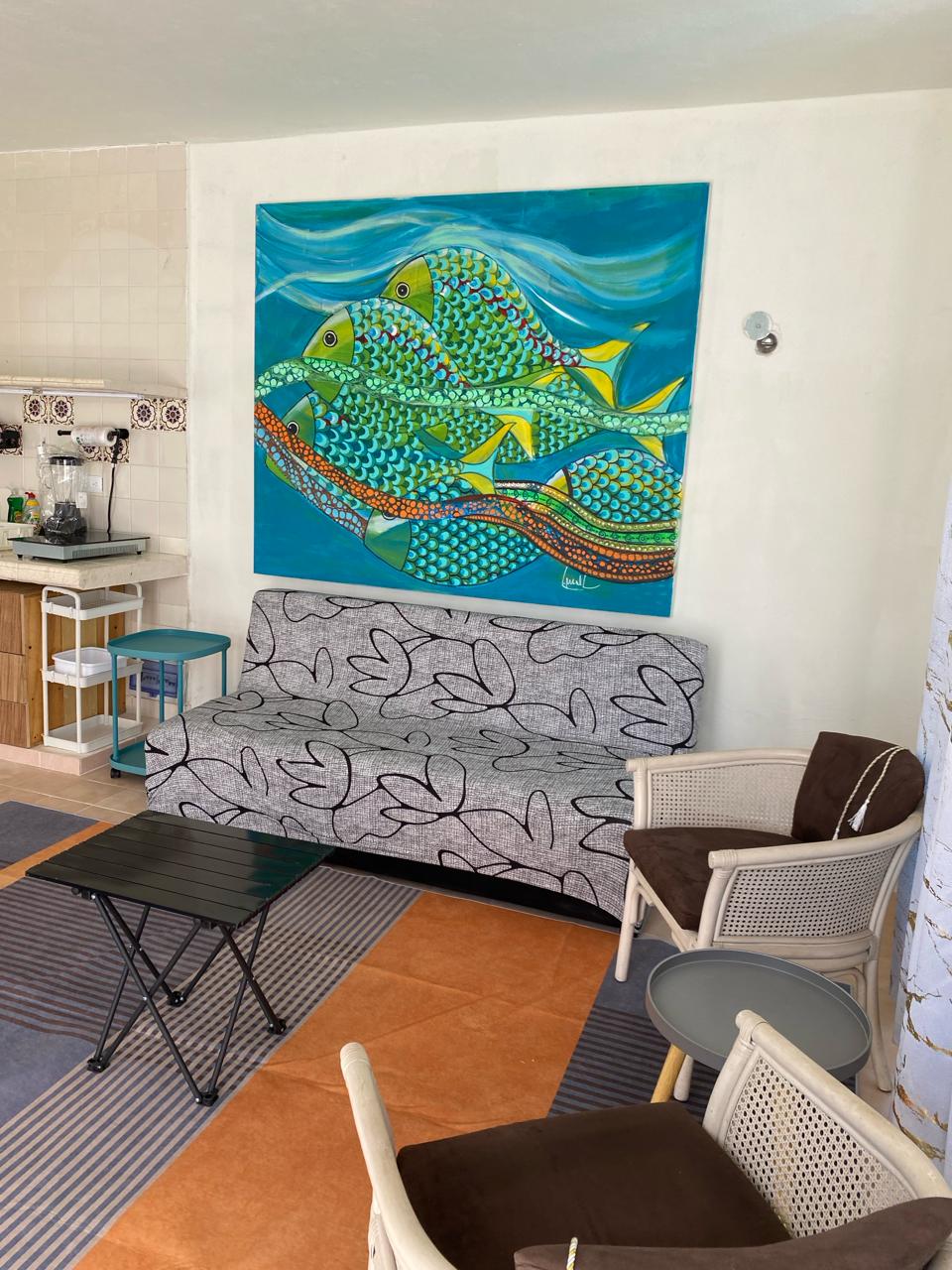 Villa Bohemia is an adults only, relaxing getaway located in a quaint fishing village between Chelem and Chuburna, off the Entrada Arrecifes (Reef). Catch some sun at the pool or at the beach, or relax in the shade and enjoy the peaceful and relaxing environment we've created for you. Snorkel and swim at the small reef, located right in your own backyard. No kids or pets are allowed.