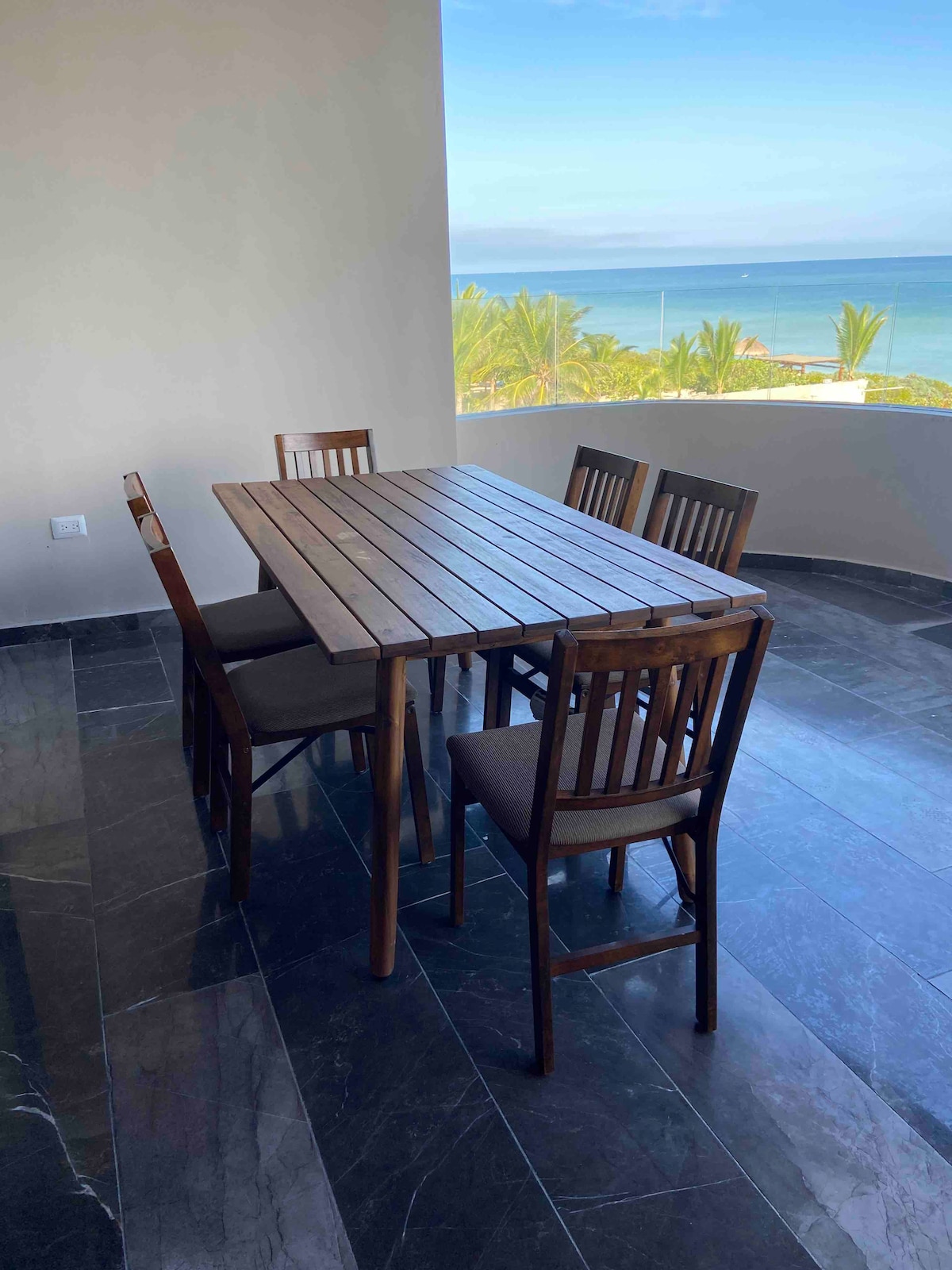 Stay in a top-floor beachfront condo with comfy furniture, a fully equipped kitchen, high-speed internet, and an ocean view dining area and balcony. Enjoy the beautiful and huge swimming pool and easy access to everything in Chicxulub, Progreso. Book now for the best ocean view, sea breeze, location, and privacy. 5-star guest reviews attest to our excellence! Enjoy the sand and the city on your visit to Yucatan!