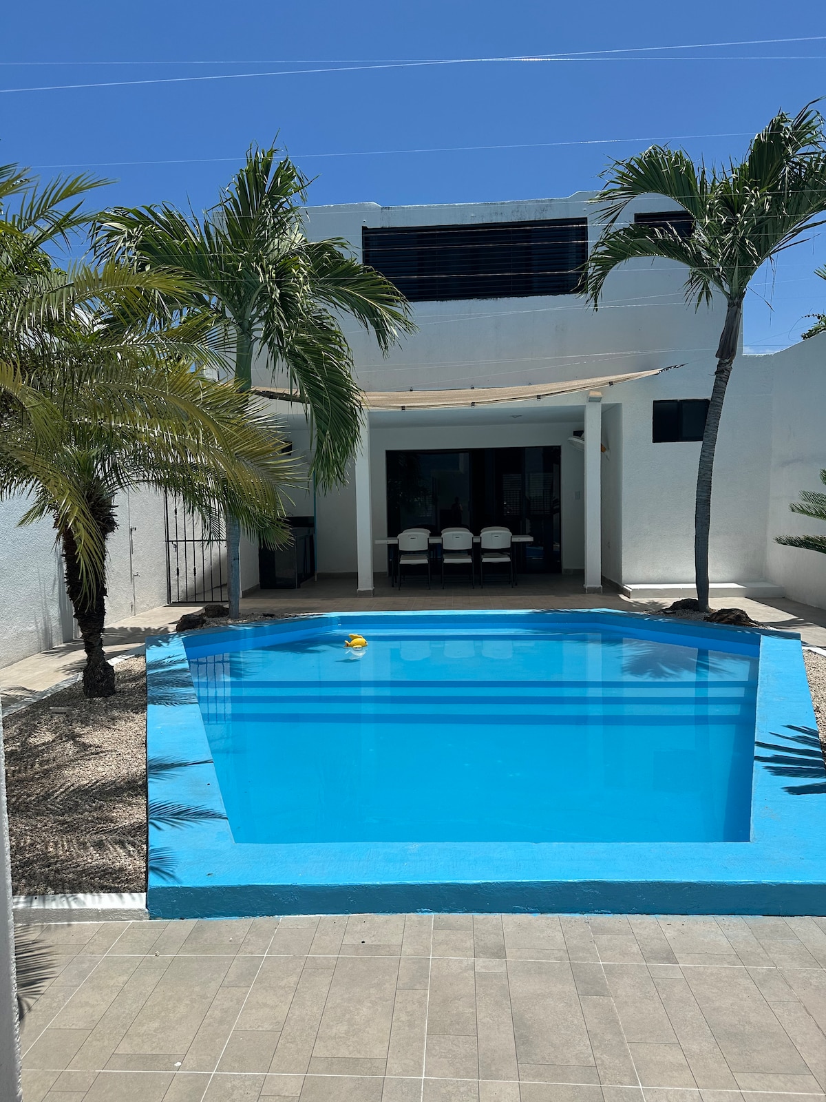 Hermosa residencia recién remodelada a una cuadra del mar, ubicada en una de las mejores zonas de la ciudad de progreso, a sus alrededores hay restaurantes, tiendas y farmacias, en 3 min llegas al centro de la ciudad, ésta residencia cuenta con todo lo necesario para pasar unas vacaciones muy tranquilas y relajadas en compañía de amigos o familia, cuenta con 2 habitaciones con techos muy altos lo cual las hace muy frescas, la casa cuenta con una excelente ventilación y una hermosa piscina