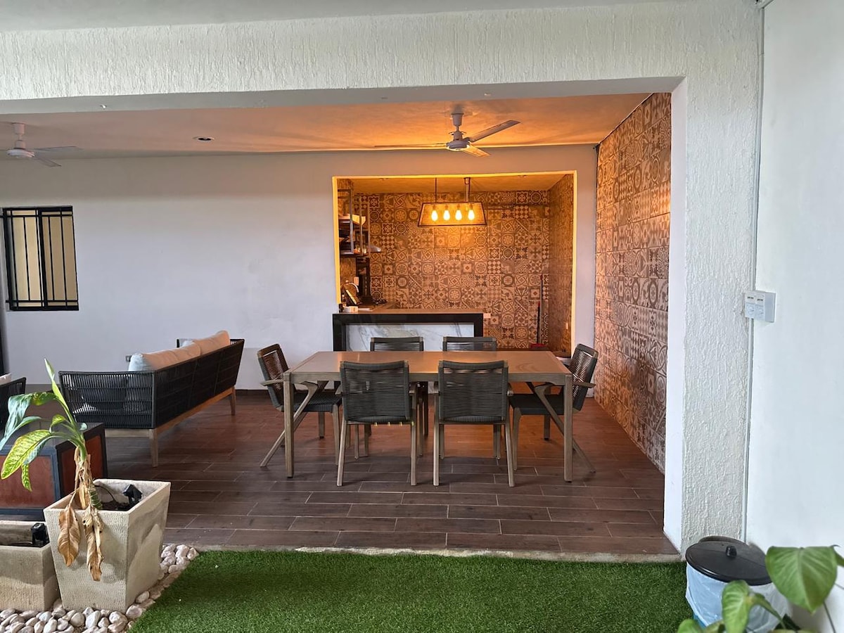 Comfortable house in the Center of Merida, Yucatan, 10 blocks from the Zocalo of the City. Ideal for couples and groups of 4 people. Designed for people who want to walk through the center of Merida and want to reach a comfortable and unique place for them, without interruptions. It has a fully equipped kitchen and dining room, bathroom, a master bedroom for two people and a common area with a sofa bed for two extra people. Pool on the back terrace of the house.