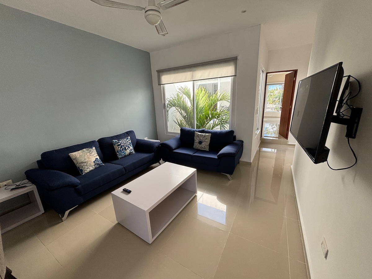 Departamento moderno en Altabrisa, ideal para familias pequeñas hasta 3 personas, la cual cuenta con: Habitación con una 1 cama matrimonial y 1 cama individual, Smart TV para que disfrutes de tus series y películas favoritas. Una pequeña terraza privada Incluye: Baño completo con agua caliente. Cocina totalmente equipada para preparar tus comidas favoritas. Sala y comedor climatizados Garaje Internet de alta velocidad, ideal para trabajar o disfrutar de streaming Ruta de transporte urbano