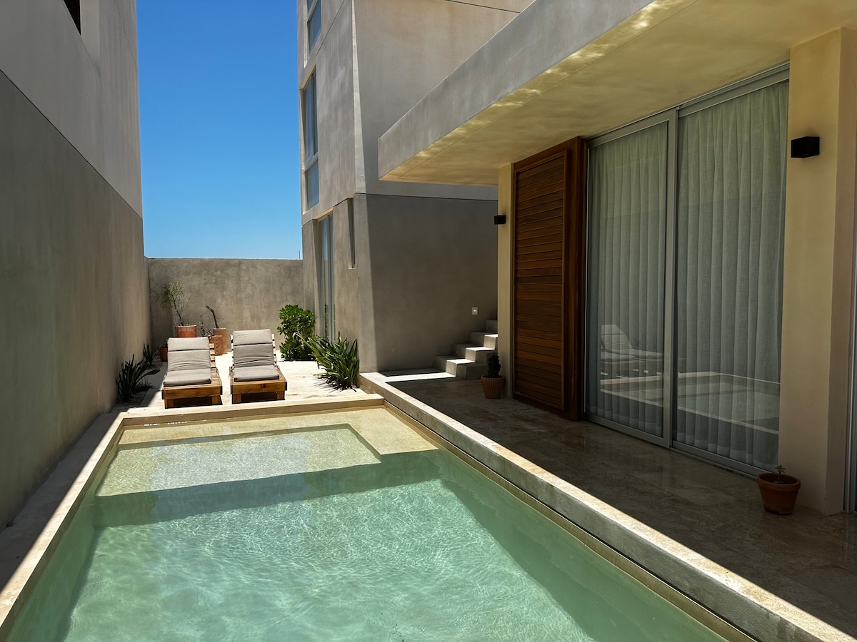 Casa nido es ideal para quienes buscan paz y tranquilidad lejos del bullicio de la ciudad. A solo unos metros del mar, podrás disfrutar de la brisa marina y de un entorno íntimo y acogedor. Contamos con todo lo necesario para que vivas la experiencia de playa al máximo: sillas, sombrilla y una neverita para acompañarte en tus días de sol y en los espectaculares atardeceres de Chuburná. La piscina y palapa privada son perfecta para relajarte todo el día bajo la sombra y disfrutar del aire libre