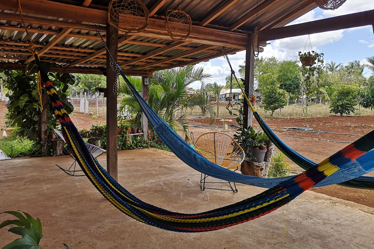 Your Private Cabana Escape Enjoy a cozy cabaña all to yourself with access to a lush garden and hammocks both under the trees and on the rooftop—perfect for relaxing or stargazing. Feel free to unwind in privacy or connect with fellow travelers, swap stories, or stream your favorite series. The vibe is yours to create.