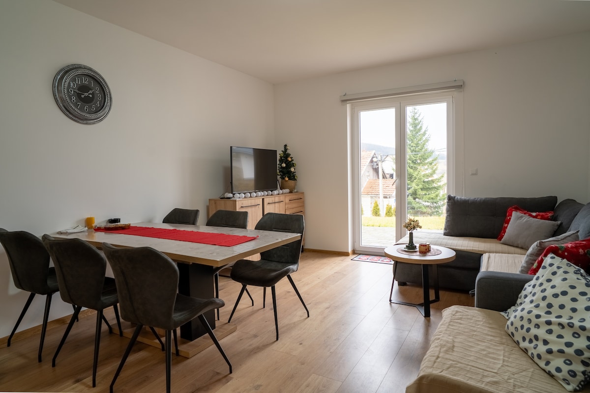 Welcome to "San Pedro" - an oasis of peace and greenery just a 5-minute drive from Sarajevo Airport. This beautiful accommodation offers you comfort, nature, and proximity to the city. "San Pedro" is an apartment with modern design and carefully decorated space. The apartment is spacious, with an open concept, plenty of natural light, and a view of Mount Trebevic. The rooms are equipped with comfortable beds featuring high-quality mattresses. The trolleybus station is a 10-minute walk away.