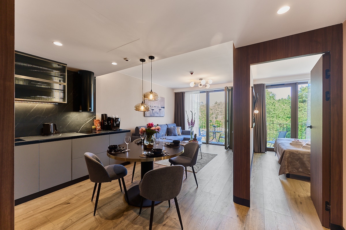Eleganckie studio o powierzchni około 25 m², stworzone z myślą o dwóch dorosłych gościach, ceniących wygodę i bliskość morza. Apartament znajduje się w nowoczesnym kompleksie ApartPark, zaledwie kilka kroków od plaży i tętniącej życiem promenady. Wnętrze zostało zaprojektowane w nowoczesnym stylu i wyposażone w komfortowe łóżko typu queen-size, funkcjonalny aneks kuchenny z wyposażeniem, łazienkę z prysznicem oraz balkon. Dodatkowo do dyspozycji gości jest również szybkie Wi‑Fi i telewizor.