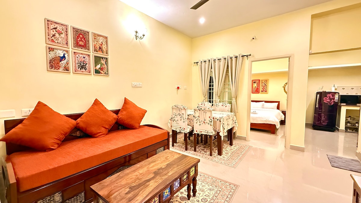 Éternité 2 is a warm and quiet home designed to help you unwind and enjoy quality time with family and friends. With a sea facing balcony for your morning coffees, and large transparent windows to enjoy the evening sea-breeze, our home is your perfect getaway to experience Pondy away from the hustle bustle of big cities. Our apartment is located a few minutes from the famous Ashram, the Promenade beach, and the White town, where you can indulge in French cuisine and architecture.