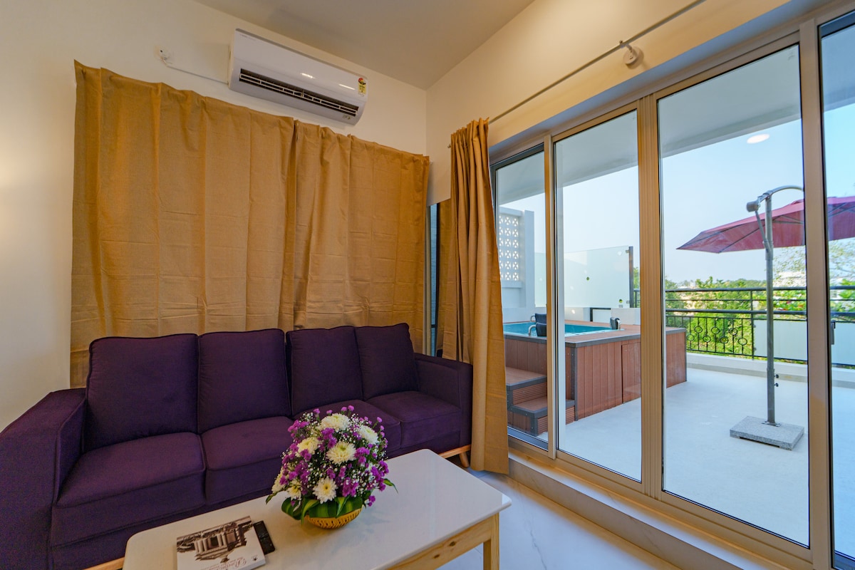 Sit back and relax in this calm, stylish space. Welcome to our designer apartment in the French town. A stone's throw away from the promenade and the Pondicherry's main market and famous eateries.The apartment has two air-conditioned bed rooms with attached bathrooms and balconies, and an air-conditioned living room with a sofa-bed. We have a fully equipped kitchen, a dedicated workspace, premium furnishings, ACs, hot water, linen and towels, a 50-inch smart TV, high-speed WIFI, washing machine.