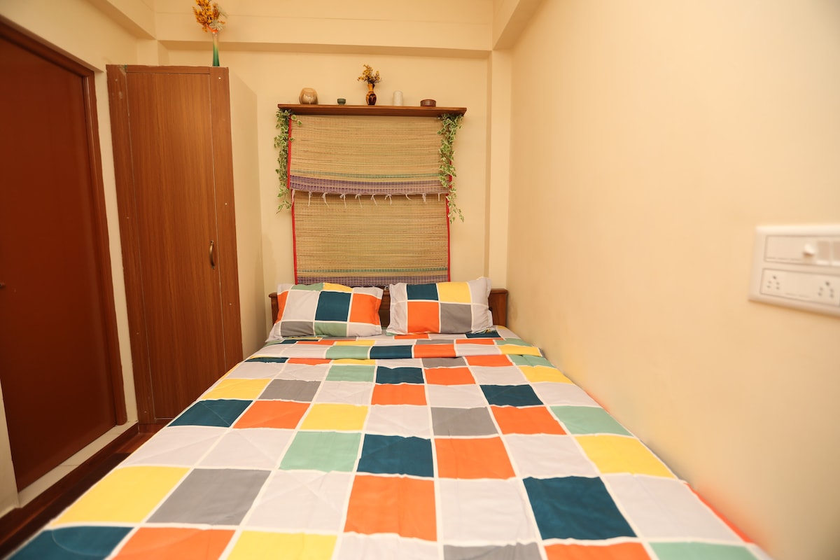 It’s a single room with a New AC, easy access to most of the tourists places, well known cafes and restaurants. One can have a safe travel back at night. At walkable distance, you get to visit - White/FrenchTown ( a lane next to you) - Rock/Promenade beach - Sri Aurobindo Ashram - Arulmigu Manakula Vinayagar Koil - The sacred heart Basilica - Puducherry Museum - French war Memorial Moreover a Lively, multicultural Heritage Town, known for its grand mansions and brightly painted traditional.